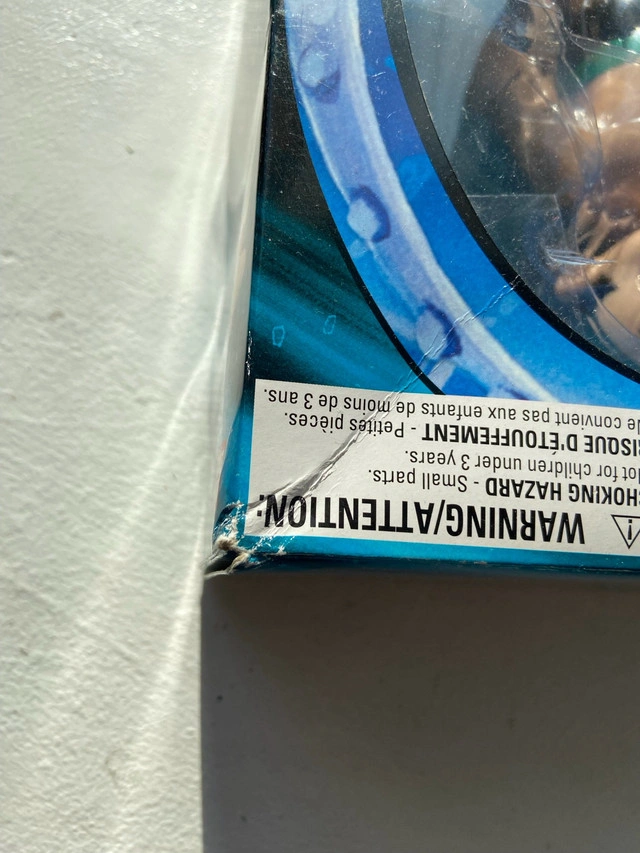 Out of production from 2004. Comes with figure and box. Cards are missing. Box has some wear and tear as pictured. Looks great on a collector shelf!