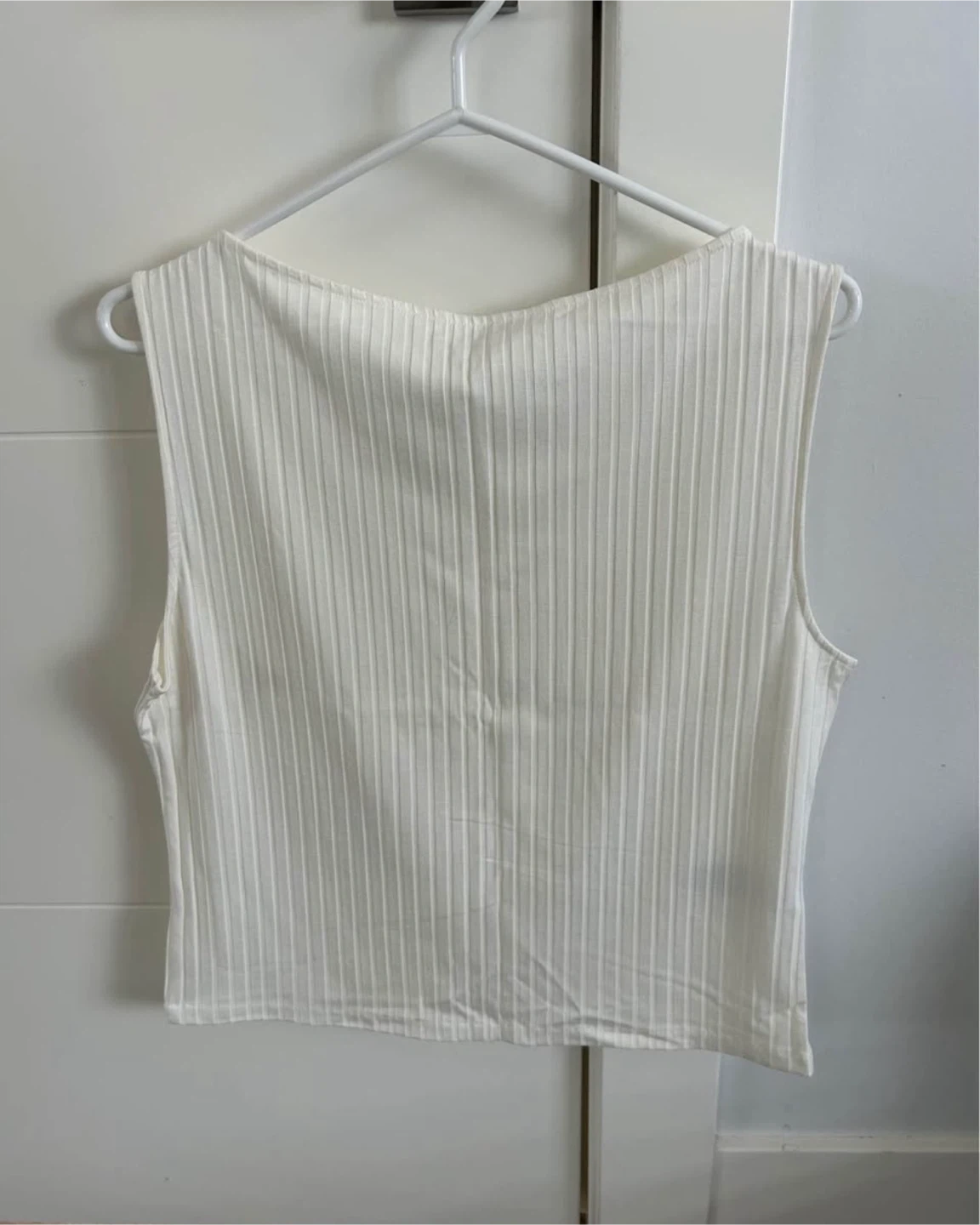 Selling a Banana Republic ribbed tank top in a lovely white colour! It's a size large and in great condition. Perfect for layering or wearing on its own during warmer weather. A versatile addition to any wardrobe!