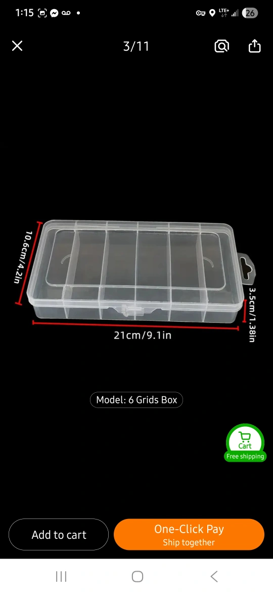 Keep your small items organized with this clear plastic organizer box! It features 6 grids to separate your items, and the transparent design allows you to easily see what's inside. The box measures approximately 21cm (9.1 inches) in length, 10.6cm (4.2 inches) in width, and 3.3cm (1.3 inches) in height.