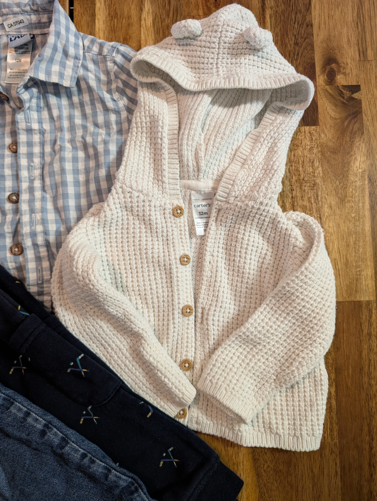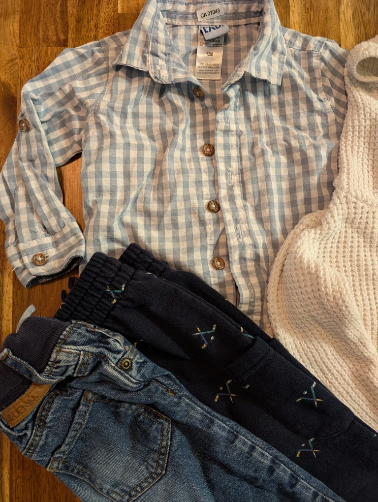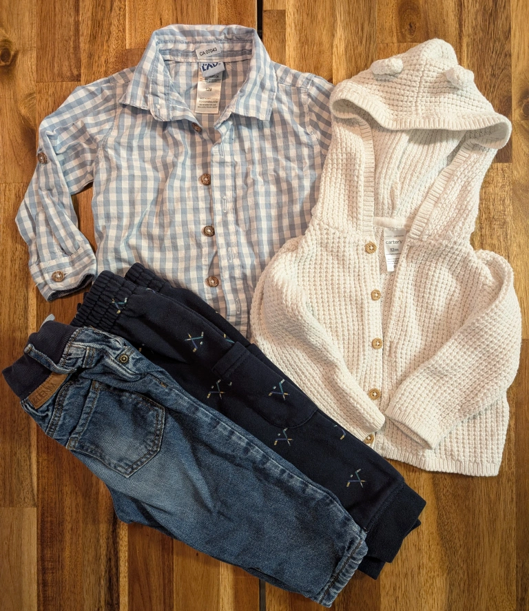 Includes knit hoodie with little ears, soft denim, button up top and hockey pants because pre-season is starting soon π