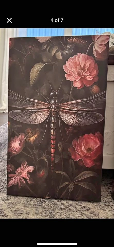 Beautiful dragonfly print on canvas. Framed onto 23.6”X15.7”X1.5” wooden frame, light weight and ready to hang with sawtooth hardware attached. Pick up in North Bowmanville.