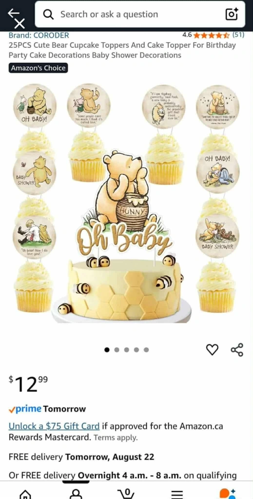 These cute CORODER bear cupcake toppers are perfect for a baby shower or birthday party! The set includes 24 pieces to decorate your cupcakes and cake. It is missing the main cake topper. Only comes with the cupcake toppers.
