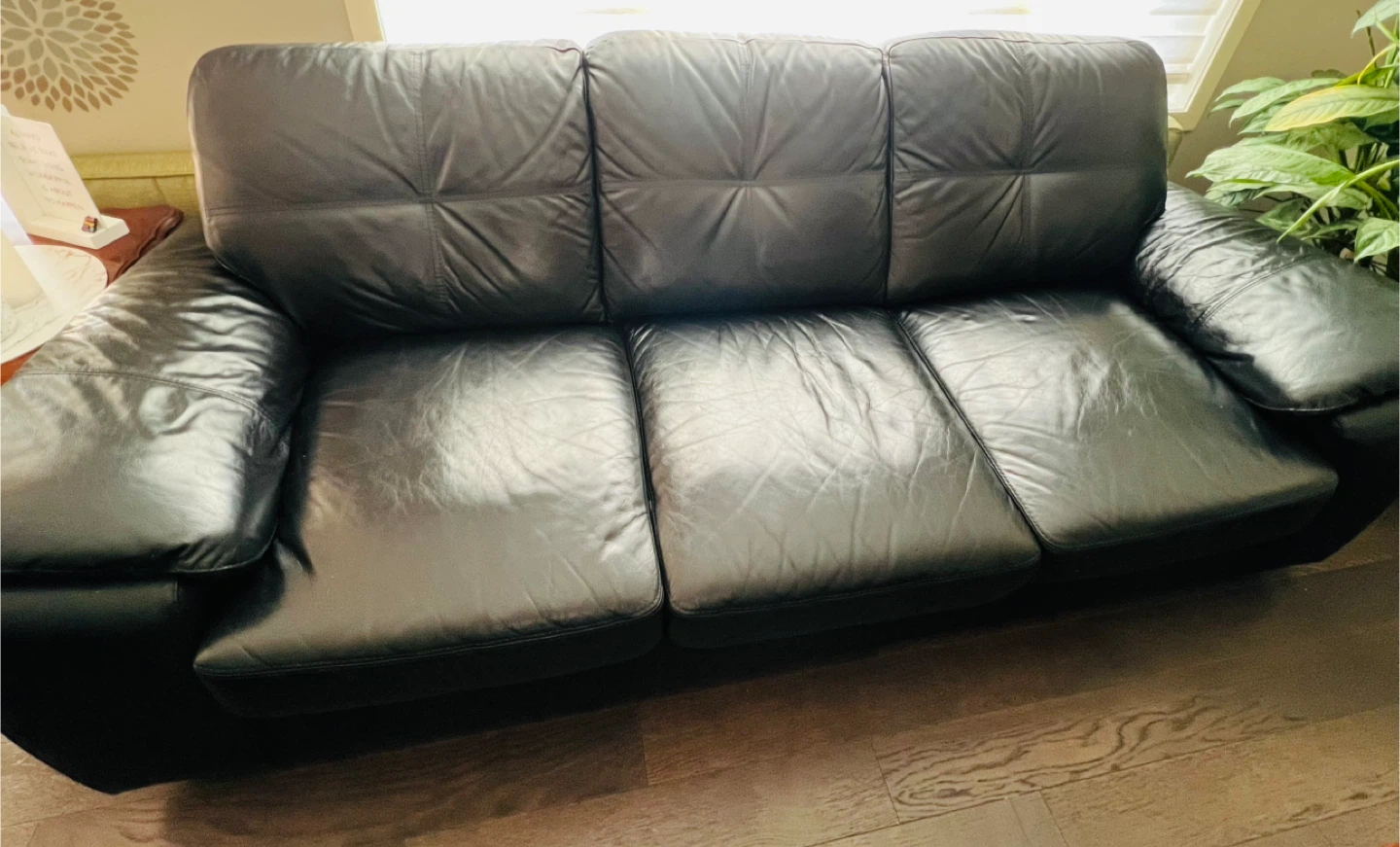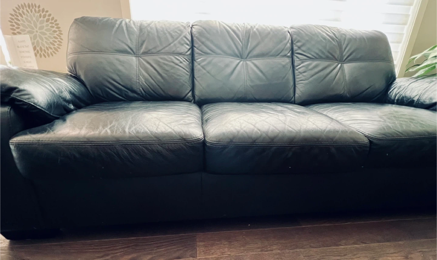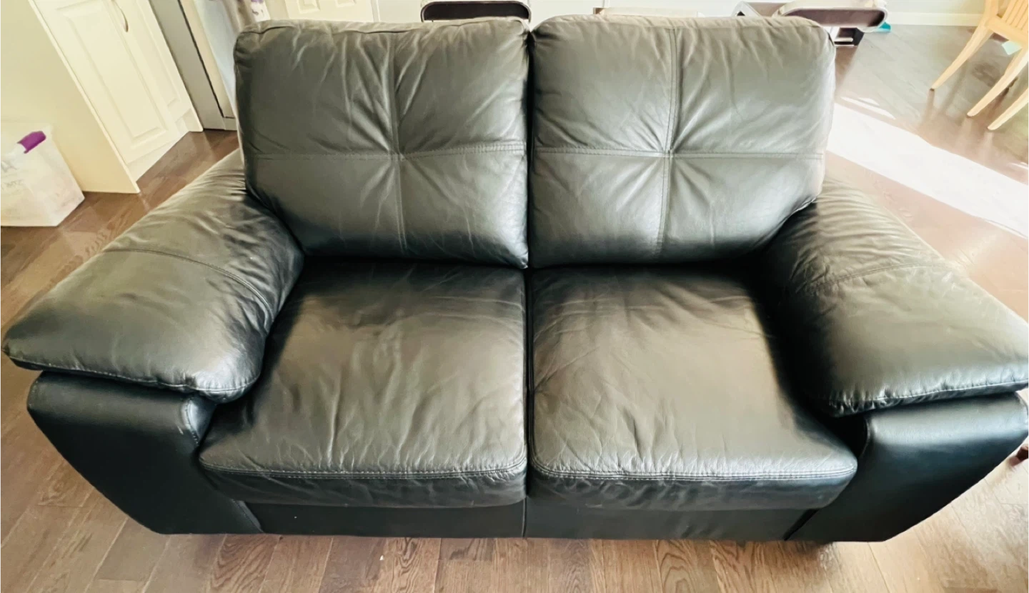 Selling a black leather3 seater + loveseat sofa. It's in good condition and would be a great addition to any living room .. No rips or holes .