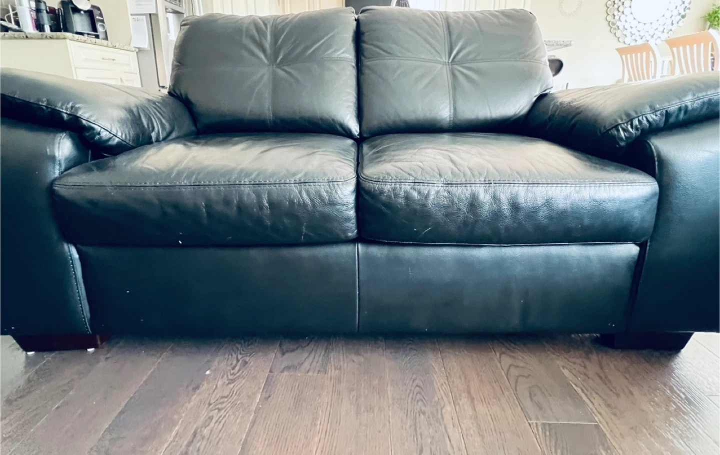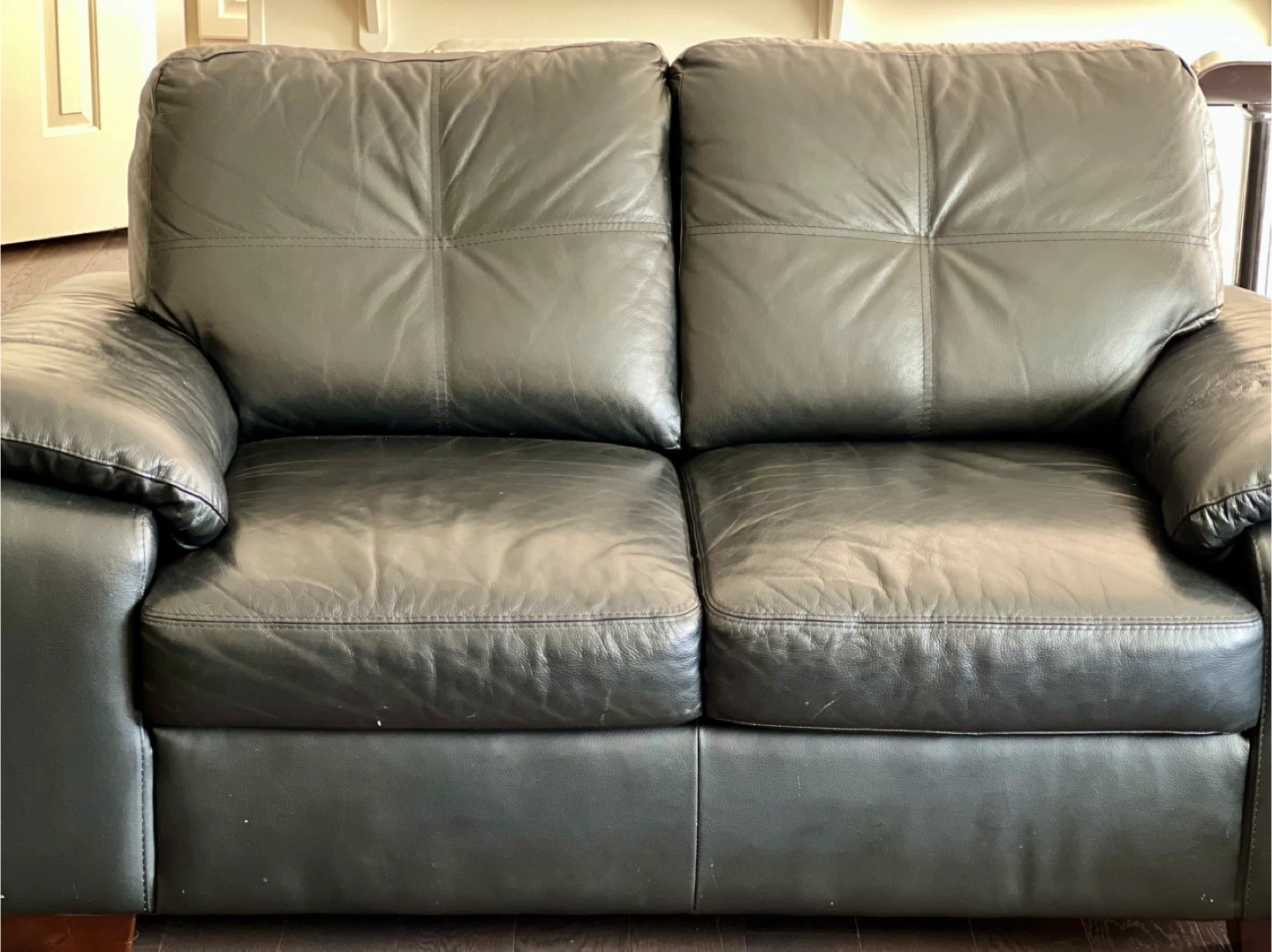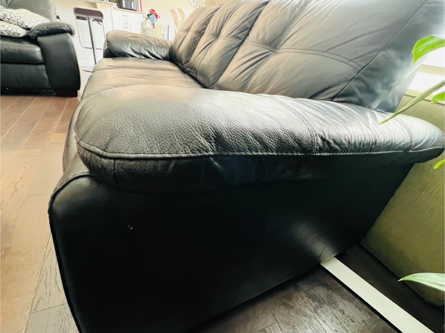 Selling a black leather3 seater + loveseat sofa. It's in good condition and would be a great addition to any living room .. No rips or holes .