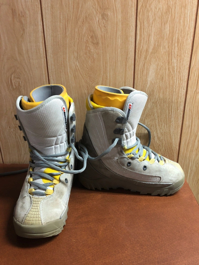 Burton moto snowboard boots, size 7 women’s. Good condition. $50. The performance you have with your snowboard can greatly depend on what is on your feet. The Burton Moto snowboard boots are both for the beginners and the experienced boarders. You will be hitting the slopes faster with the lightning fast lacing power of a single pull lacing. The boots are made with a custom "heat-mold" and comfort footbed that is properly matched to your arch shape. This helps to support your foot which will reduce pressure points and securely hold your foot in place. With boots like these, you can be on the slopes all day long!! Product Details Key Features of the Burton Moto Snowboard Boots: Foot Shape: Mid Wide to Wide Flex: Soft Synthetic Leather and Textile Shell 2-Part Outsole with EVA Cushioning and Rubber Ice Spikes 3D Molded Tongue Imprint 1 Liner with PU Energy Panels and Stretch Lycra Toe Panels Molded EVA Footbed Support: 5. Let me know if you're interested!