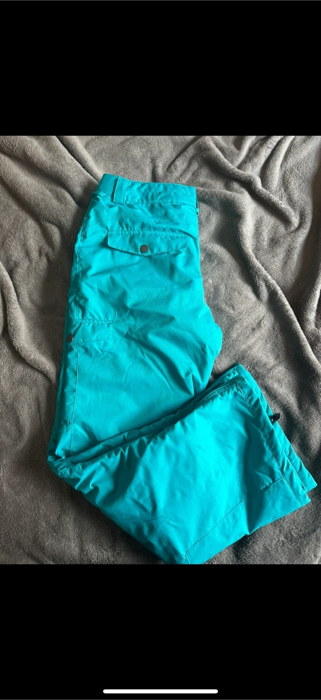 These turquoise snow pants are perfect for hitting the slopes! They are in great condition and ready for a new owner. They are a vibrant turquoise colour, and are perfect for staying warm and dry this winter season
