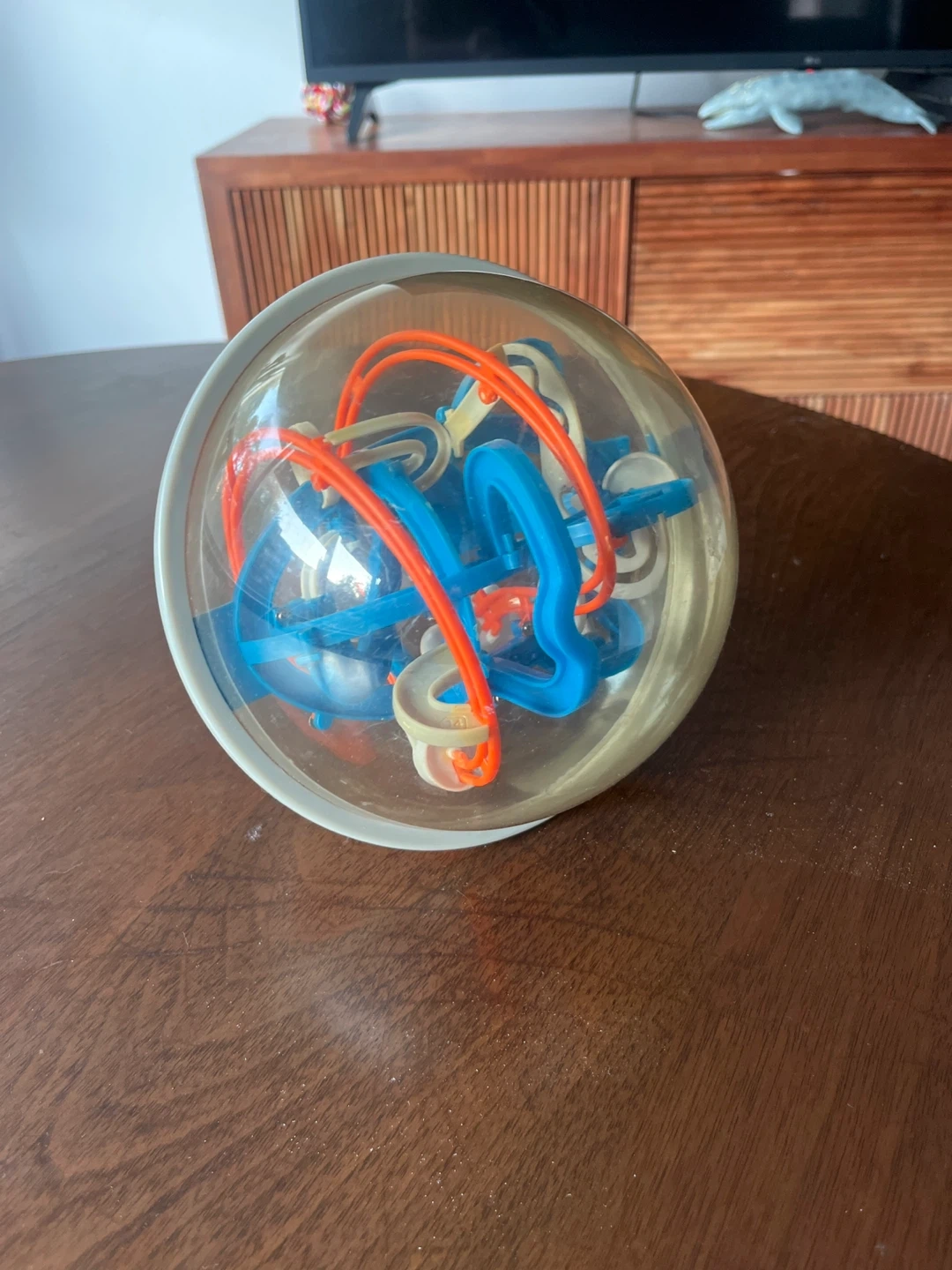 Selling a fun puzzle ball maze game! It's a great way to keep your mind active and entertained. The ball contains a colourful maze with blue, orange, and white components. Perfect for kids and adults alike!