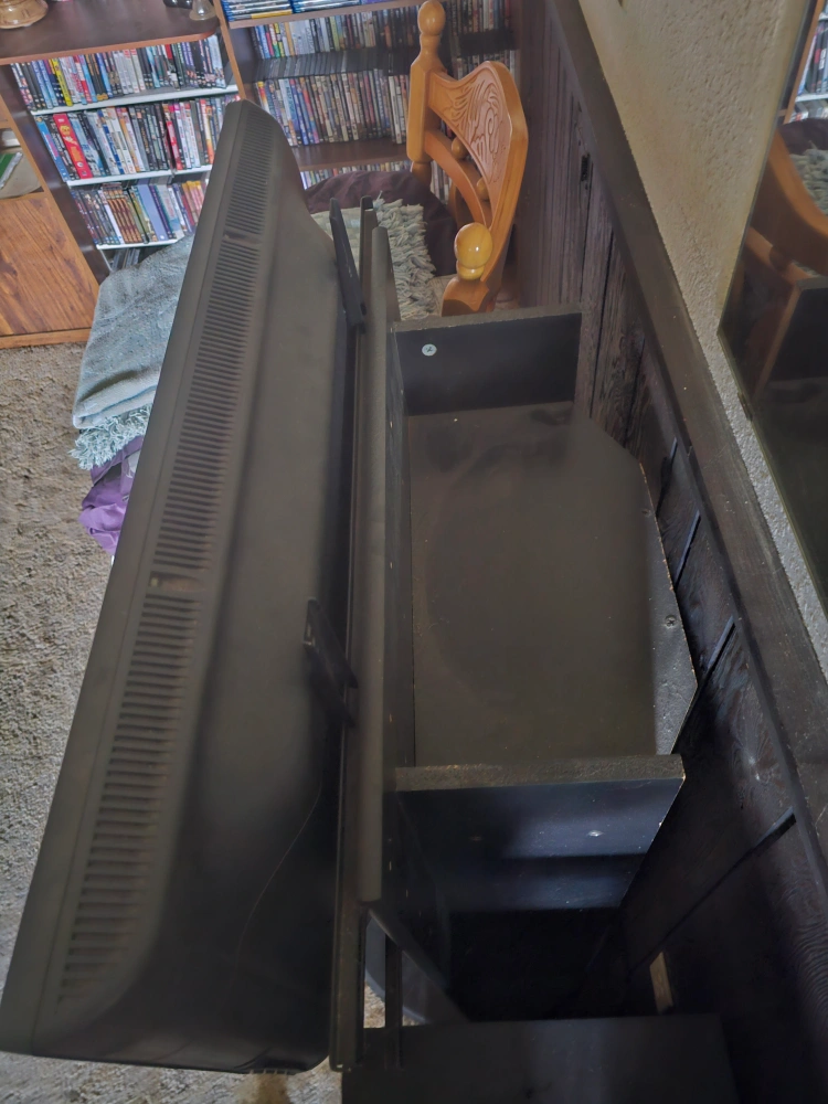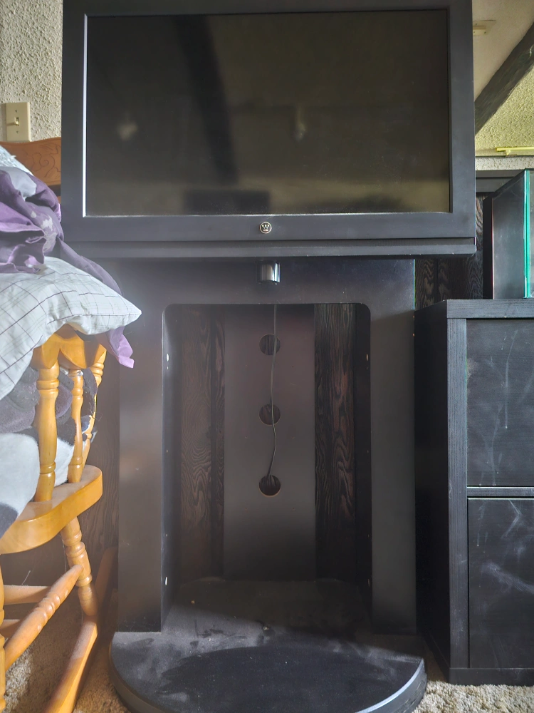 2532"tv older works great stand base is lazy Susan holds 250 games too.