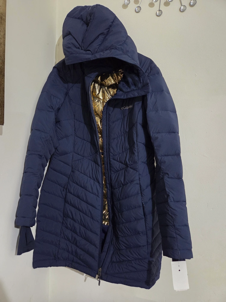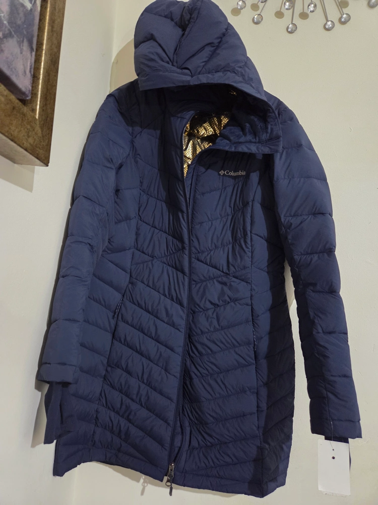 Columbia women's puffer jacket in a beautiful navy blue colour! Perfect for staying warm during those chilly Canadian days. It's in great condition and ready for a new home