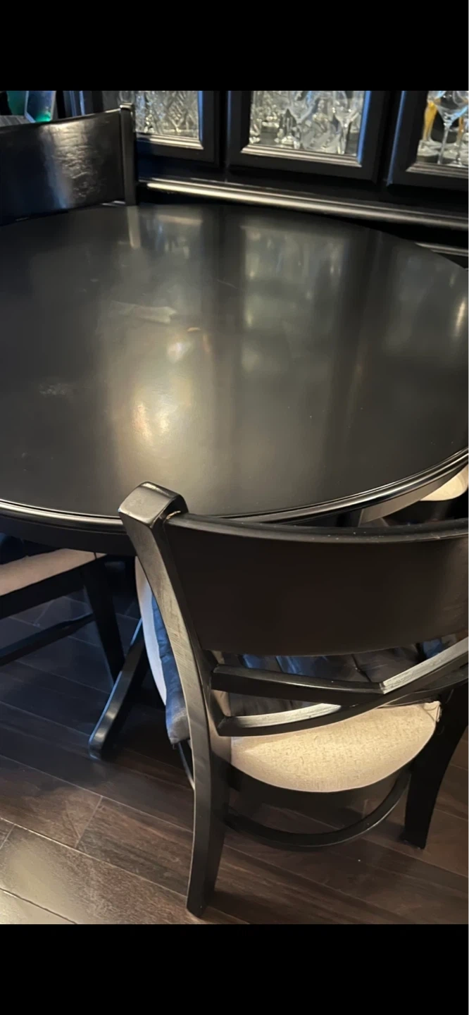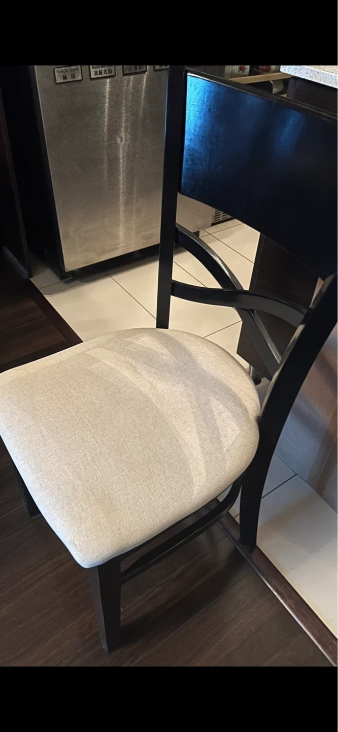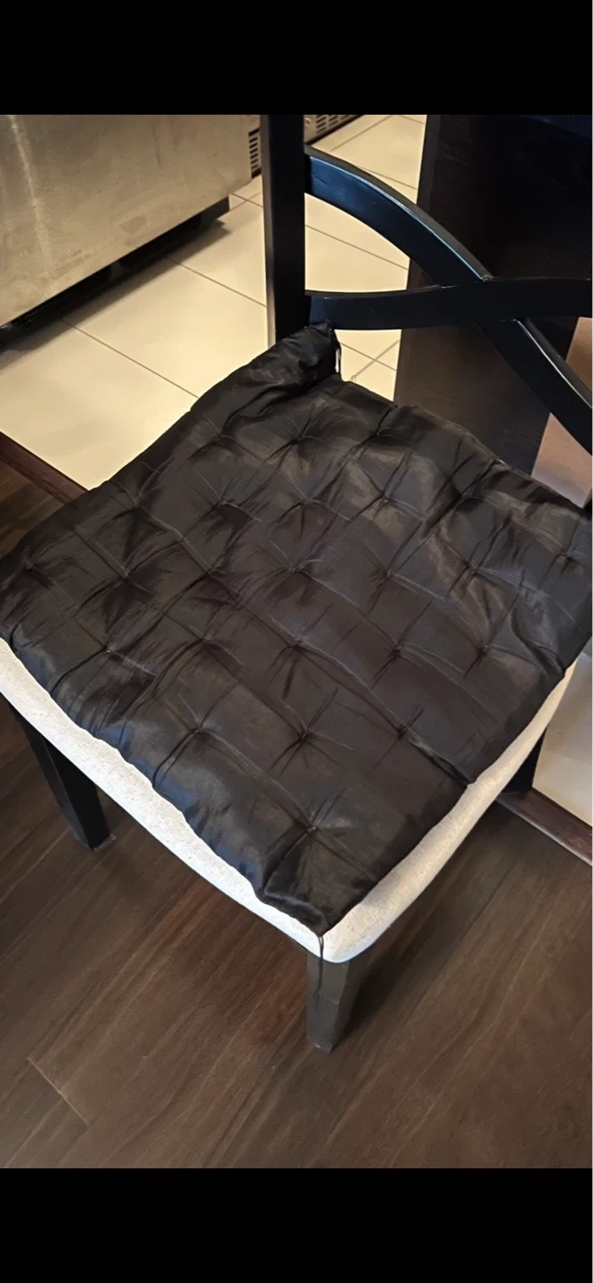 A stylish black set of 4 dining chairs. Features comfortable upholstered seats cushion included for another look and a sleek finish. Perfect for family dinners or entertaining guests!