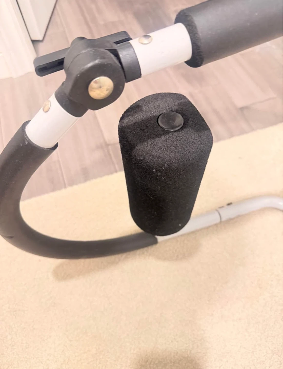 This is a KEYS abdominal exercise roller. It's made with a sturdy metal frame and padded grips for comfort. Foam padding protects your knees and hands during workouts.