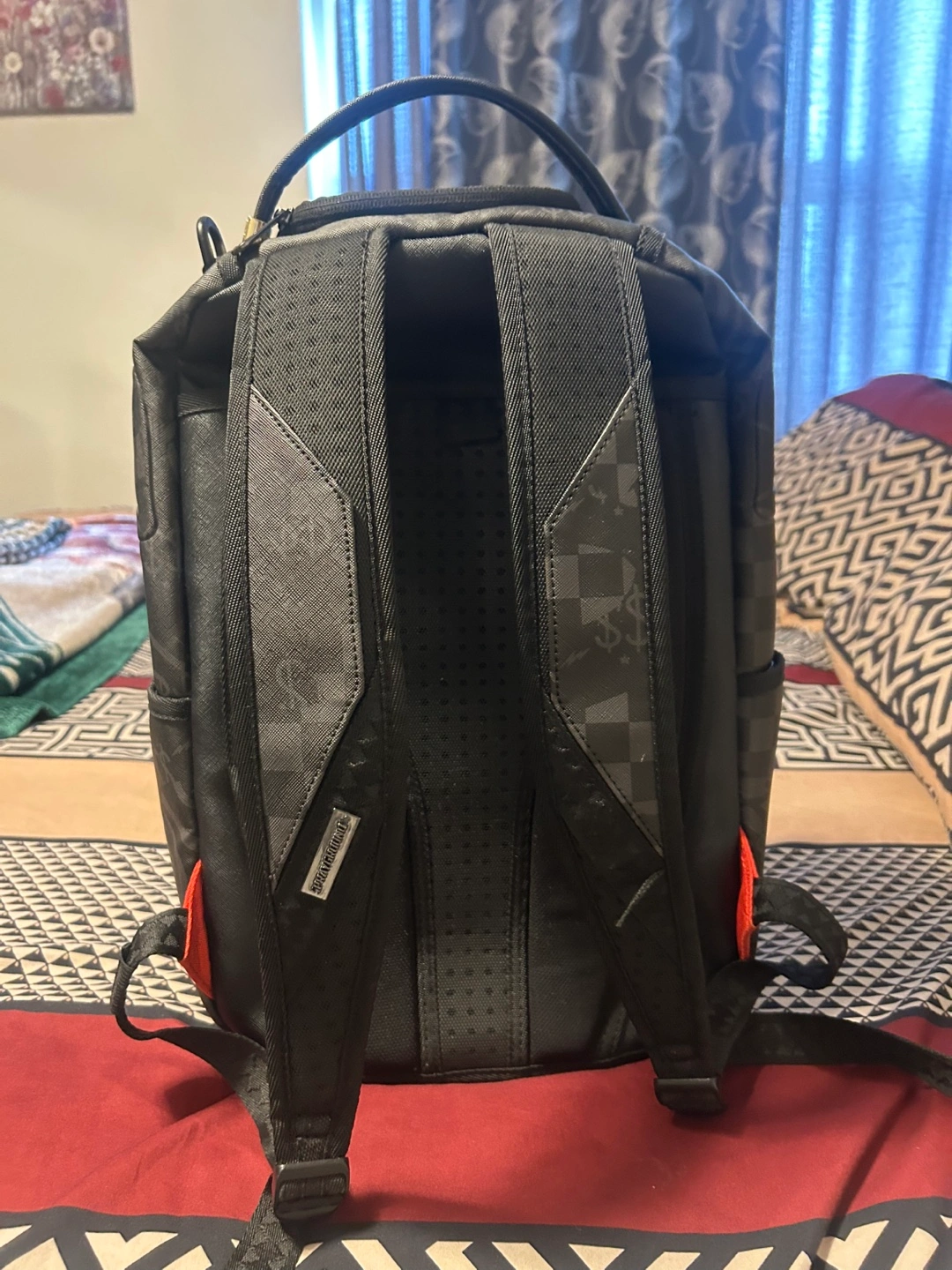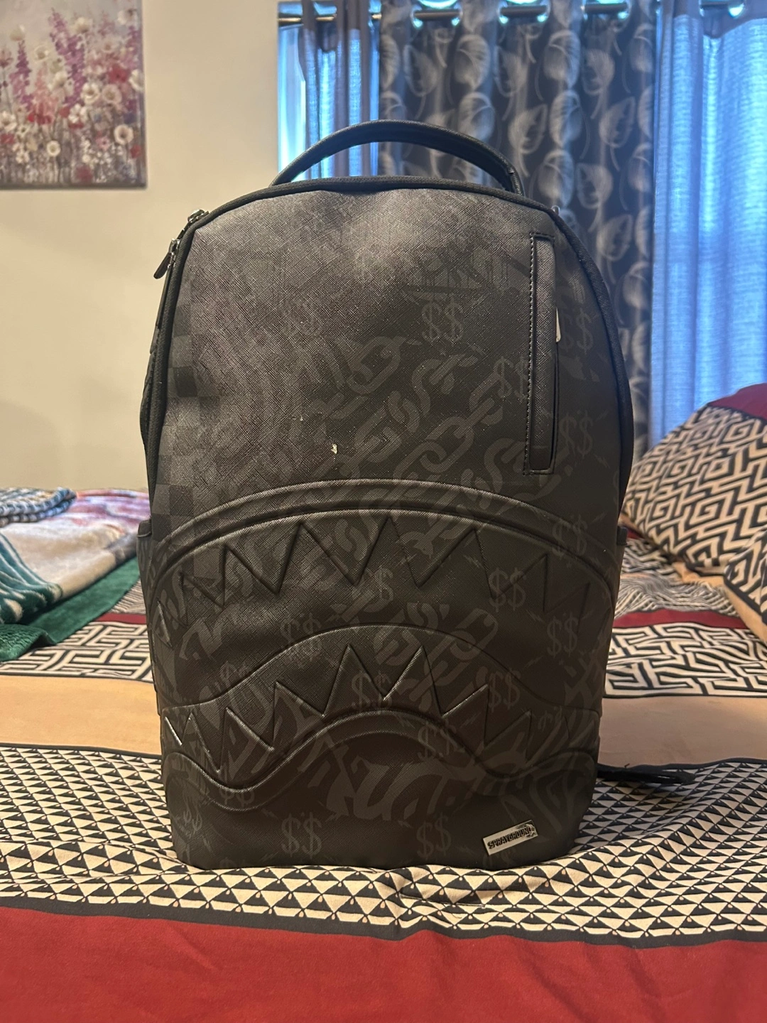 Selling a Sprayground backpack in great condition! It features a unique design with dollar signs and chains. Perfect for school, travel, or everyday use! The straps are adjustable for a comfortable fit. I wear it like a couple times, but I got a new backpack so I wanna sell this one.