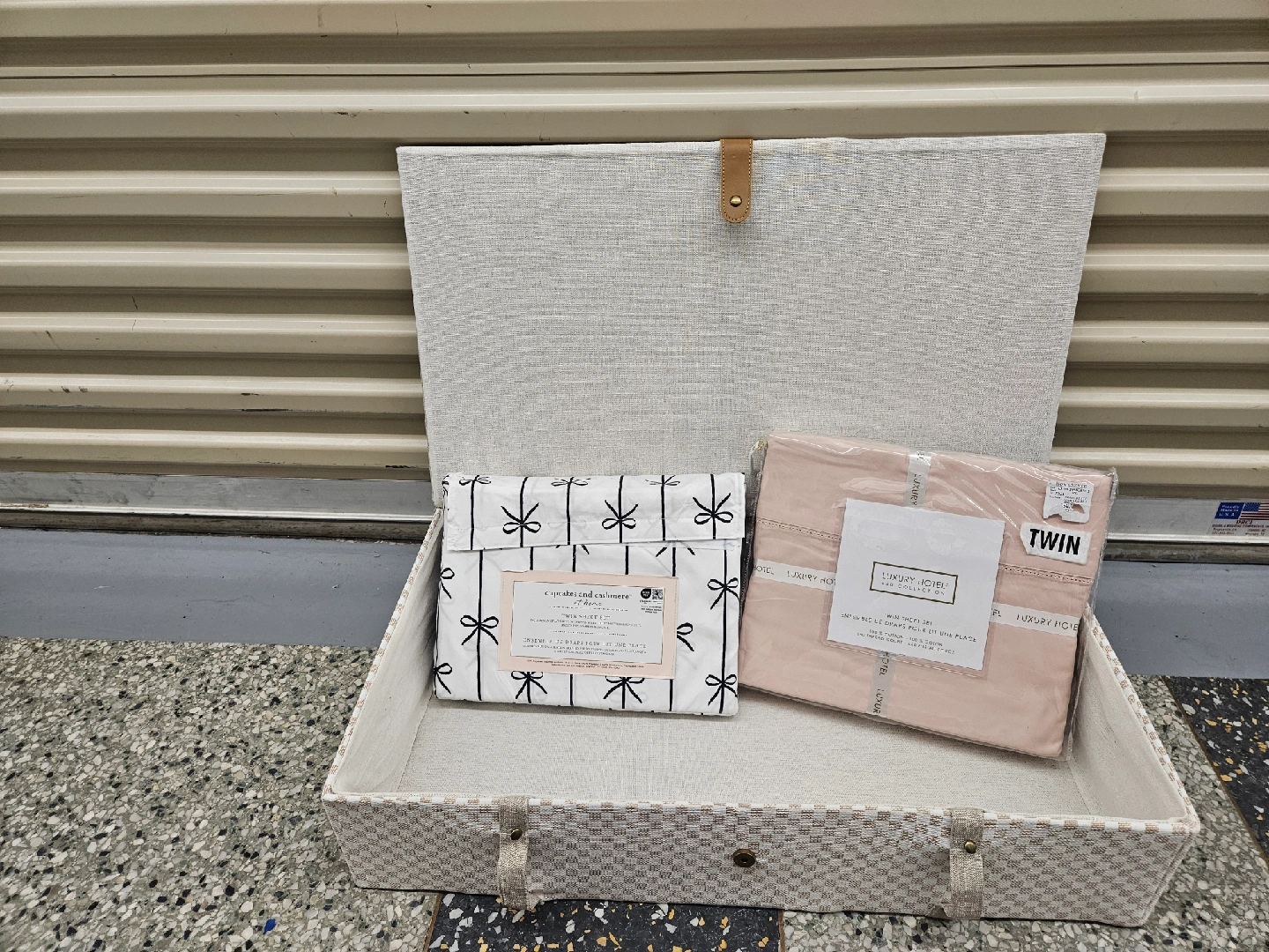Selling a Luxury Hotel Collection twin sheet set, still in the original packaging! The set includes a fitted sheet, a flat sheet, and a pillowcase. The sheets are a soft, neutral colour and would look great in any bedroom