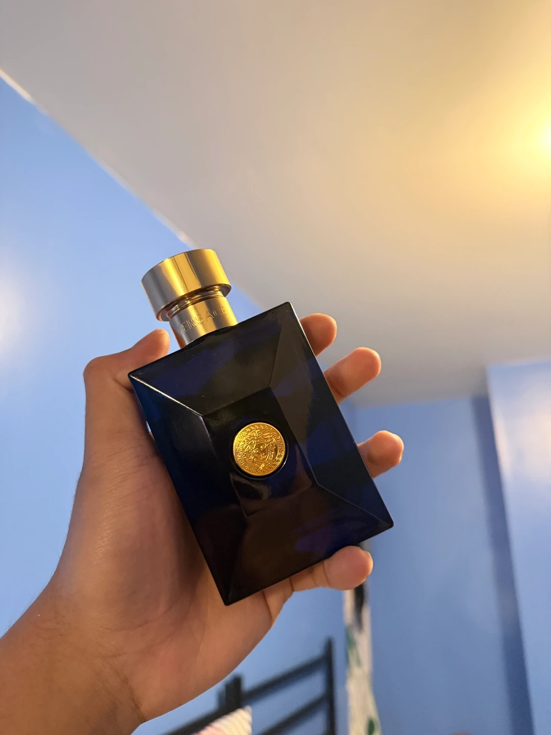 Selling a bottle of Versace Dylan Blue It's a 100ml bottle, and it's in great condition! The scent is a classic and masculine fragrance. The bottle is 70% Full