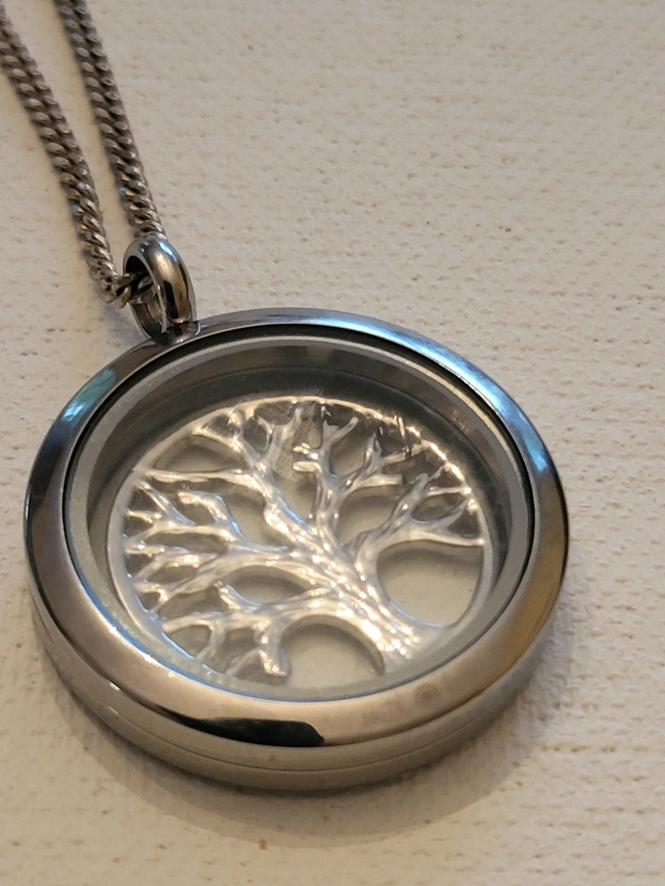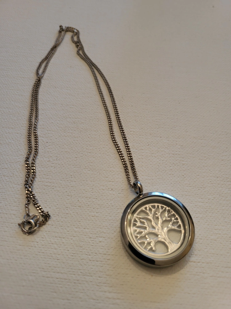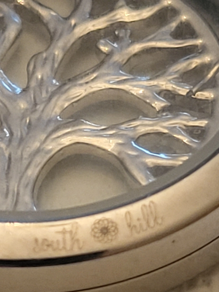 South Hill locket on a 925 stamped sterling silver necklace featuring a tree of life design inside the locket. It's in great condition and ready for a new home.