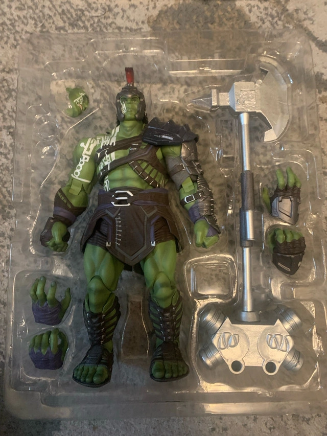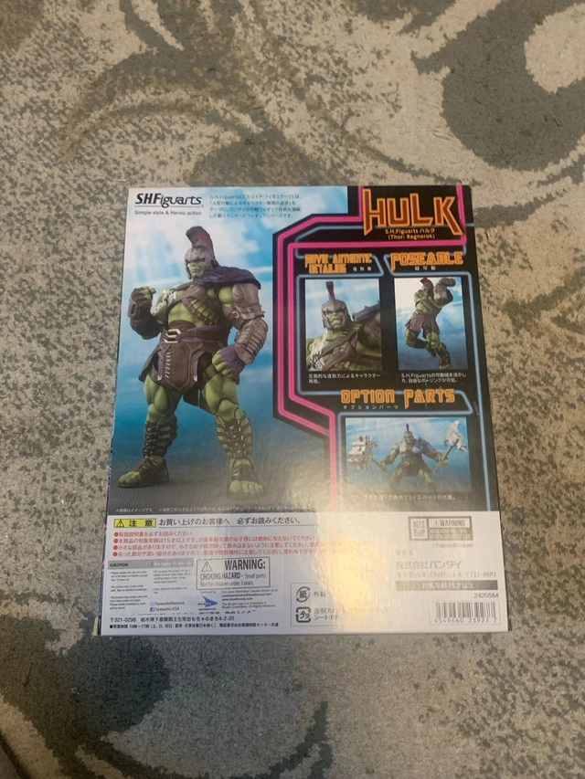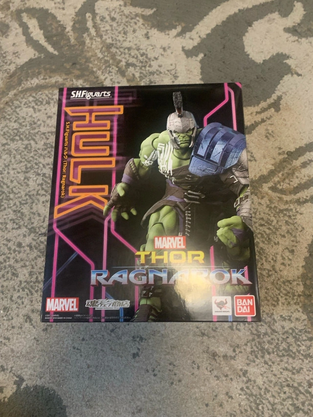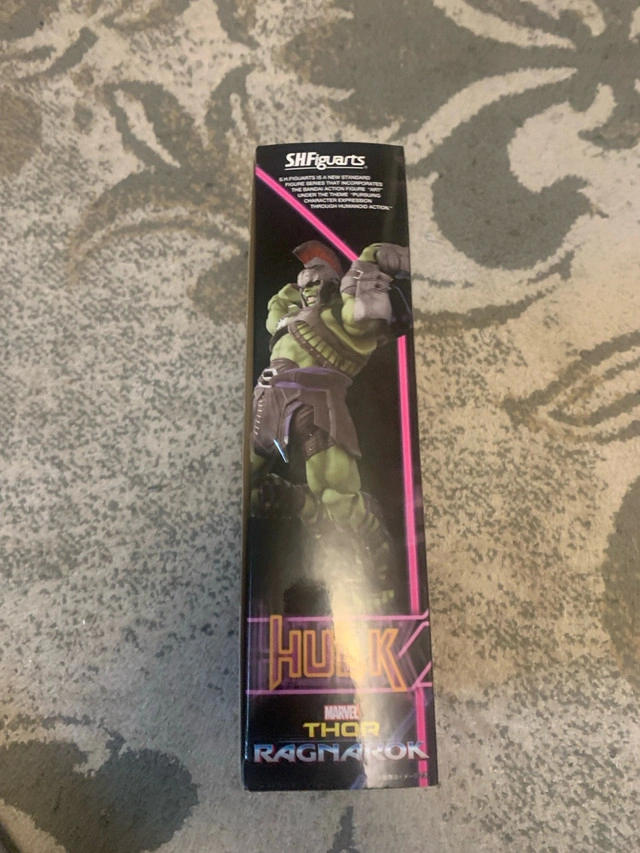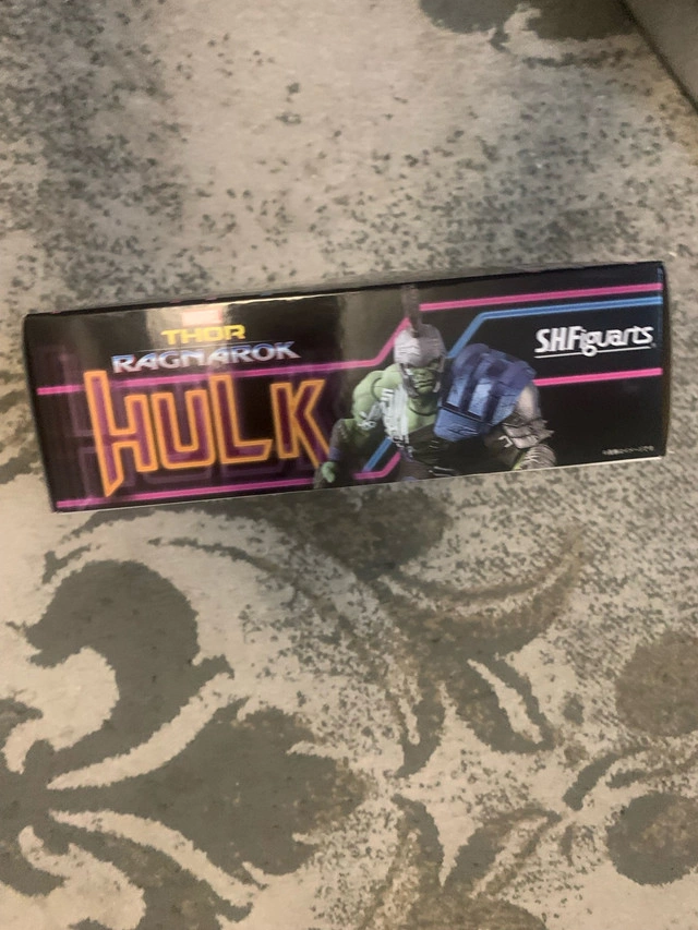 60Brand: S.H. Figuarts Character: Hulk Movie: Thor: Ragnarok Height: Approximately 7.5 inches Accessories: Includes interchangeable hands, weapons, and facial expressions Condition: Used - Like new For Sale By: Owner Cash accepted: Yes