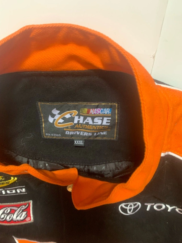 Brand: Chase Authentics Team: The Home Depot Racing Sponsors: NASCAR, The Home Depot, Toyota, Coca-Cola, Old Spice, Bass Pro Shops, and more Colour: Black and Orange Size: XXXL Condition: Used - Good Size: XXL For Sale By: Owner Cash accepted: Yes