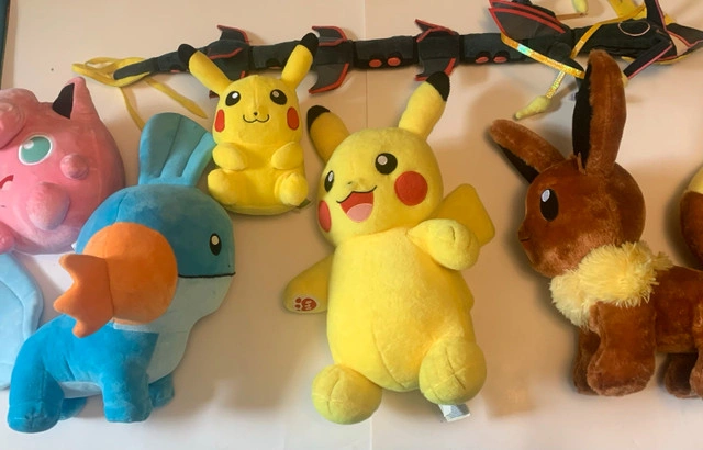 Send offers. Pikachu 2x, Eevee, Jigglypuff, and Mudkip, shiny rayquaza shiny. * Authentic Pokémon plushies * Various characters available. Condition: Used - Good. For Sale By: Owner. Cash accepted.
