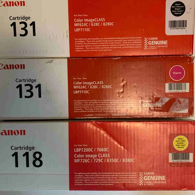 Send offers * Genuine Canon toner cartridges * Model numbers: 131 and 118 Condition: New For Sale By: Owner Cash accepted.