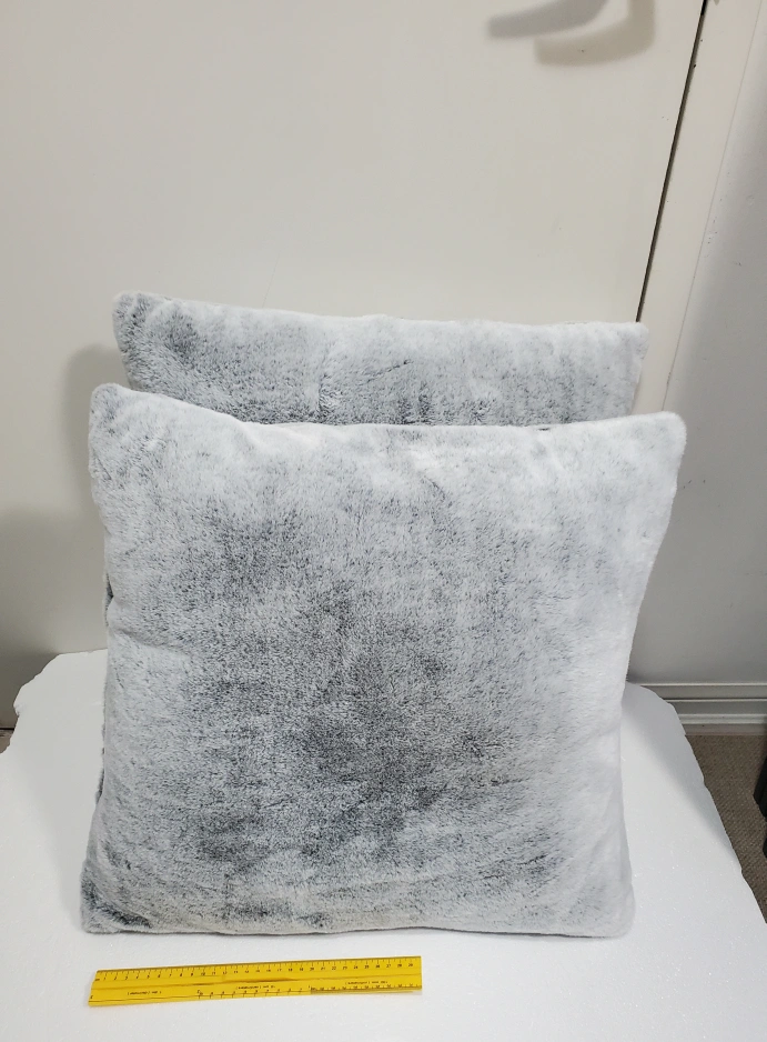 Selling 2 soft grey faux fur throw pillows. They are in great condition, used a few time. Stored mostly on unused bed. They would add a cozy touch to any room!