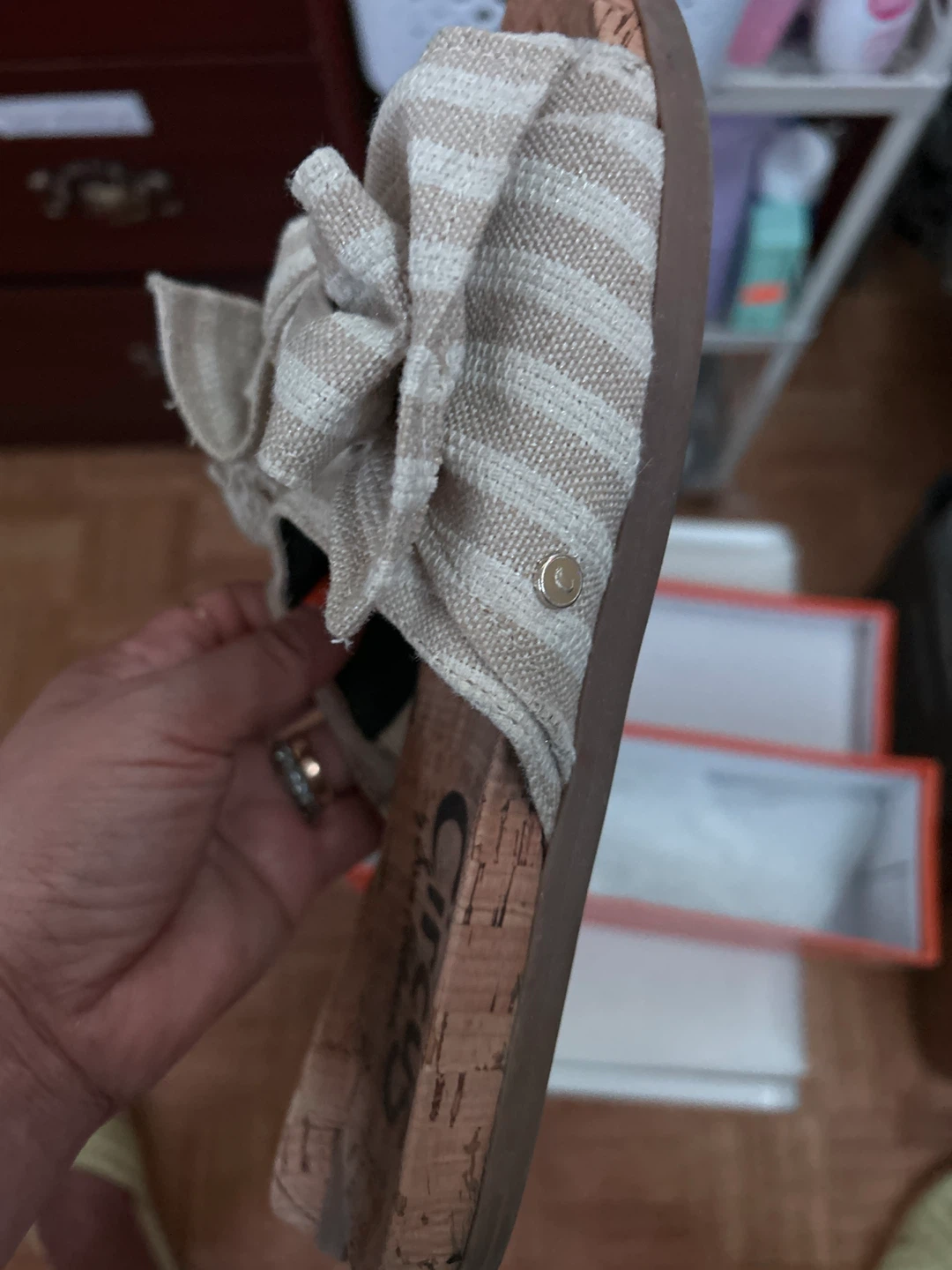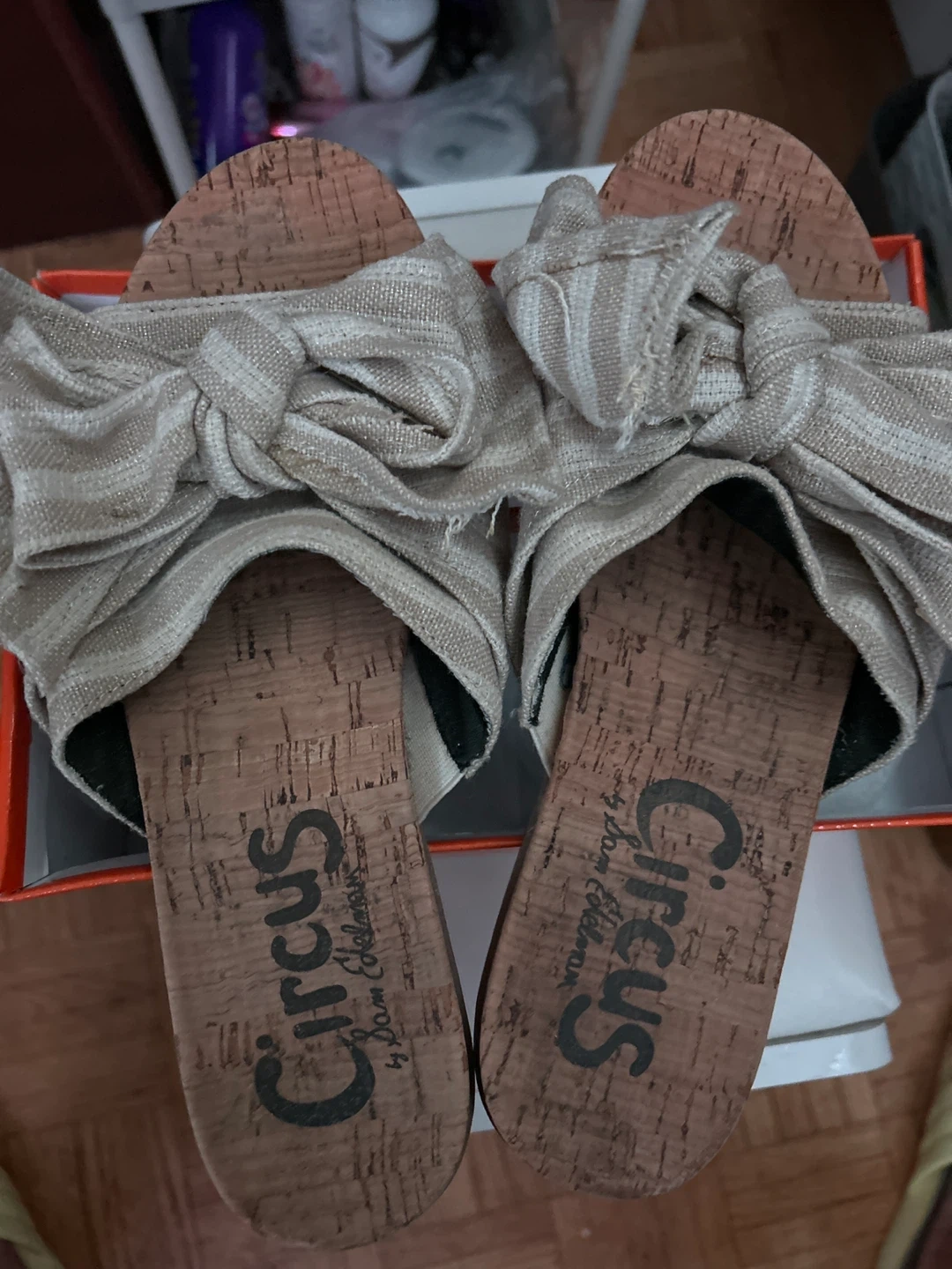 These are a pair of Circus by Sam Edelman women's sandals. They feature a cute bow design and a comfortable cork footbed. Size 7.5