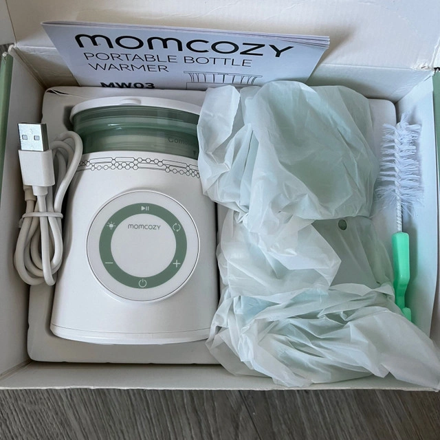 I am selling a new (OPEN BOX) Momcozy portable bottle warmer, model MW03, in its original packaging. This bottle warmer is designed for convenience and portability, making it easy to warm your baby's bottle on the go. It comes with all original accessories, including a USB charging cable and a cleaning brush. Key features include: * Portable and rechargeable design * Precise temperature control * Easy-to-use interface * Compatible with various bottle sizes * Safe and efficient heating I've seen similar bottle warmers listed on Kijiji for around $40 - $70, so I'm pricing this new unit at $65. If the ad is up, it's still available.