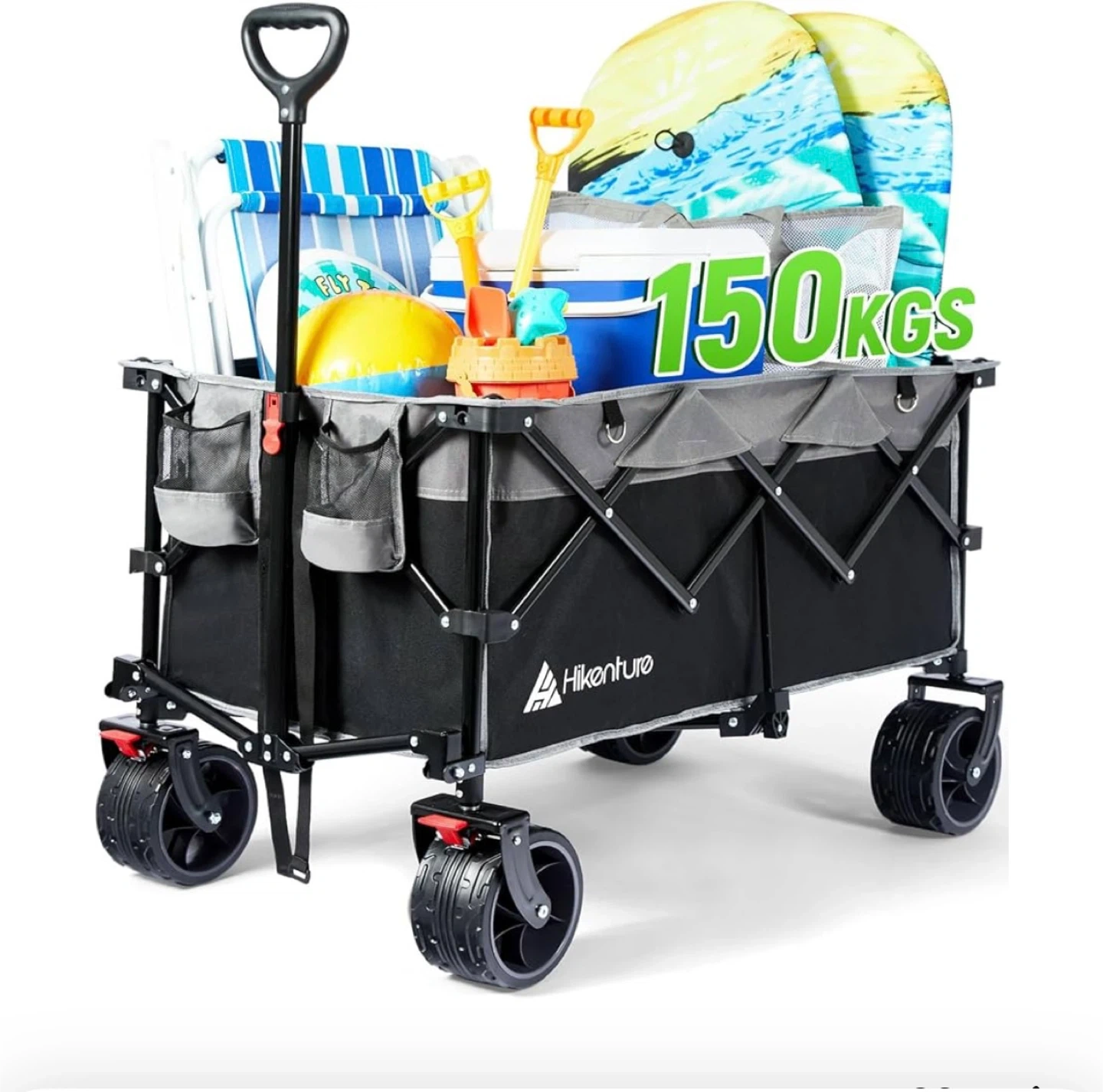 18This Hikenture collapsible wagon is perfect for hauling groceries, beach gear, or gardening supplies! It's grey and black, with a large 200L capacity. It folds up easily for compact storage, saving 80% of space. It can handle loads up to 150kg
