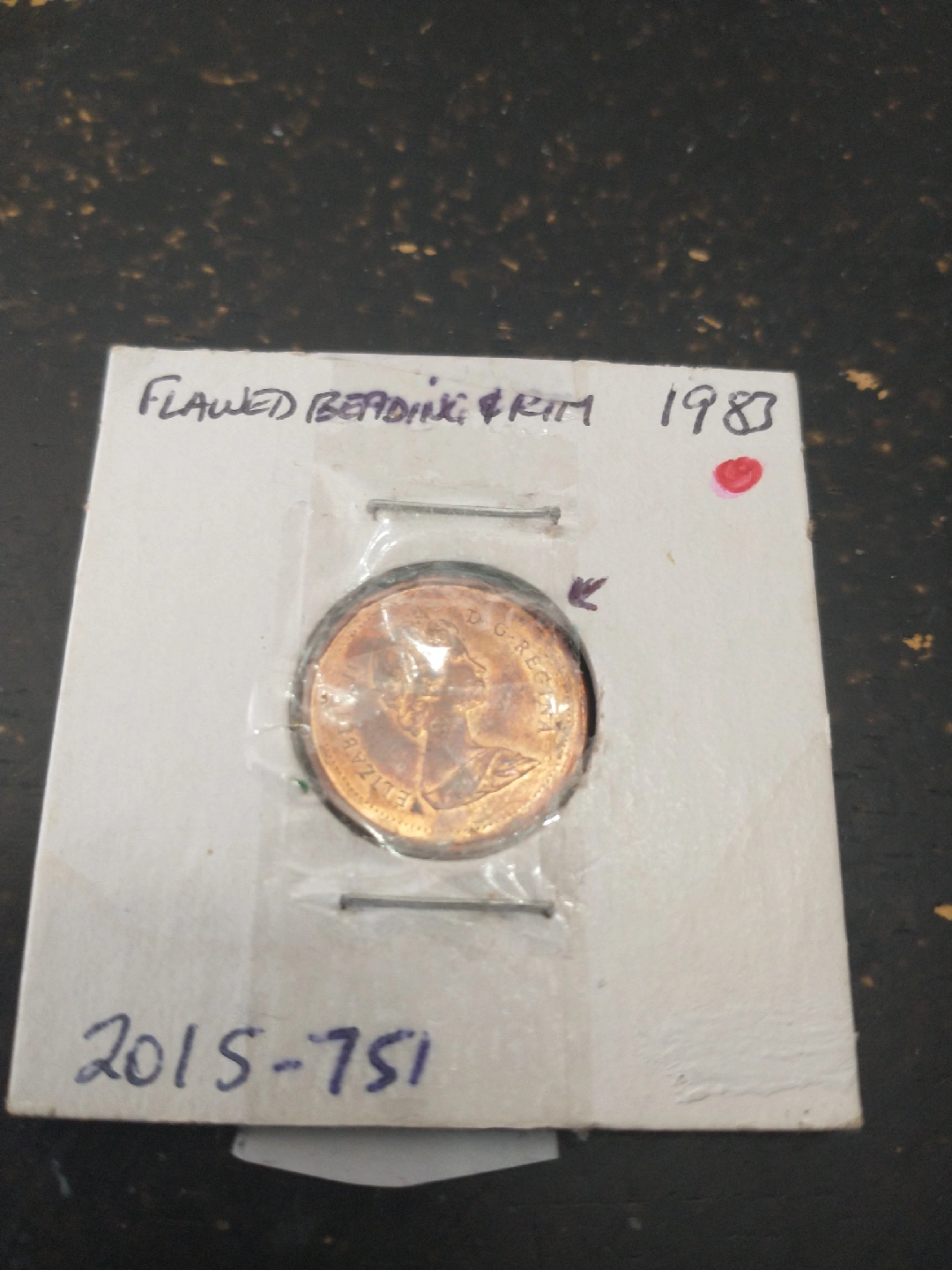 Unique 1983 Canada cent error coin - flawed beading and rim