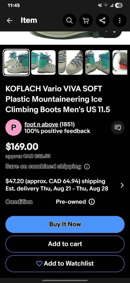 Koflach mountaineering boot extremely comfortable hardshell mountaineering boots for serious hikers. I believe they are manufactured in Switzerland. Excellent for ice climbing and extreme mountaineering. I paid 120$ I never got a, chance to use them as I lost half of my foot. 30 obo I can deliver anywhere in the Vancouver downtown core.