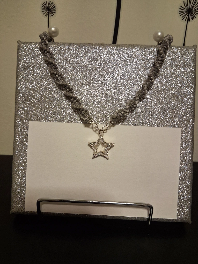 Handmade macrame 'silver star' pendant with silver chain & clasp. $25. Pick up near GM Oshawa.