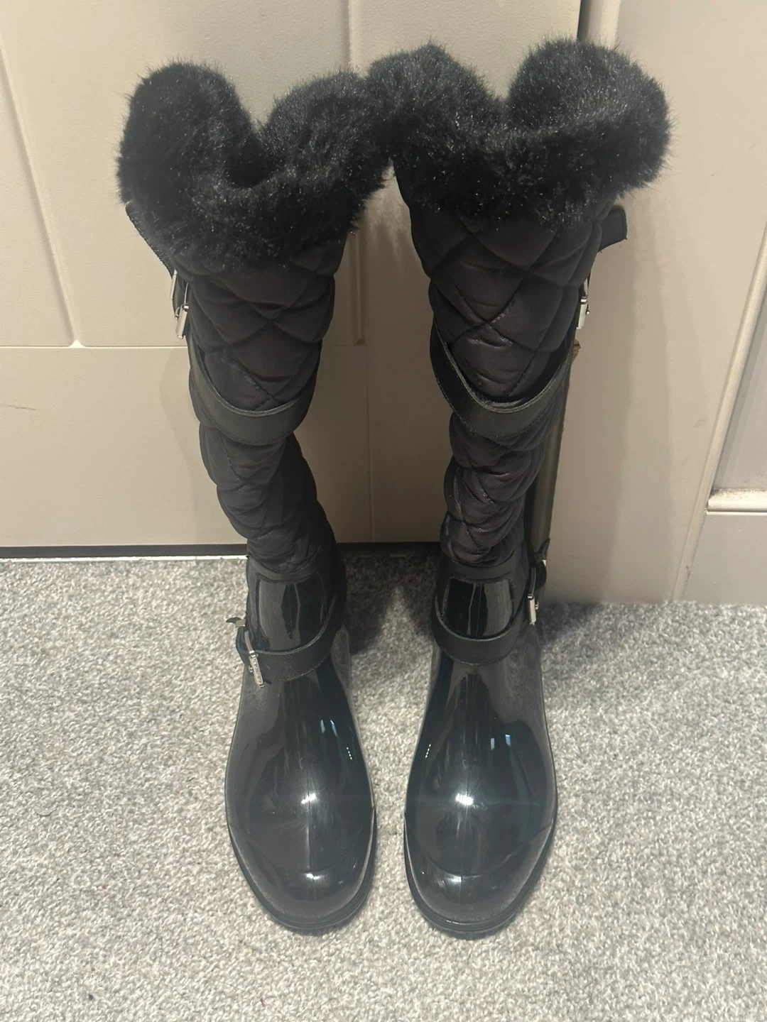 They're black, quilted, and perfect for keeping your feet warm and dry this winter season!