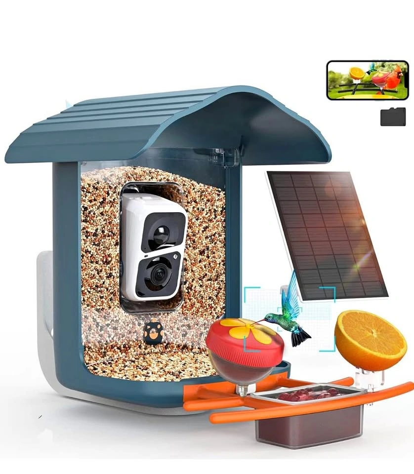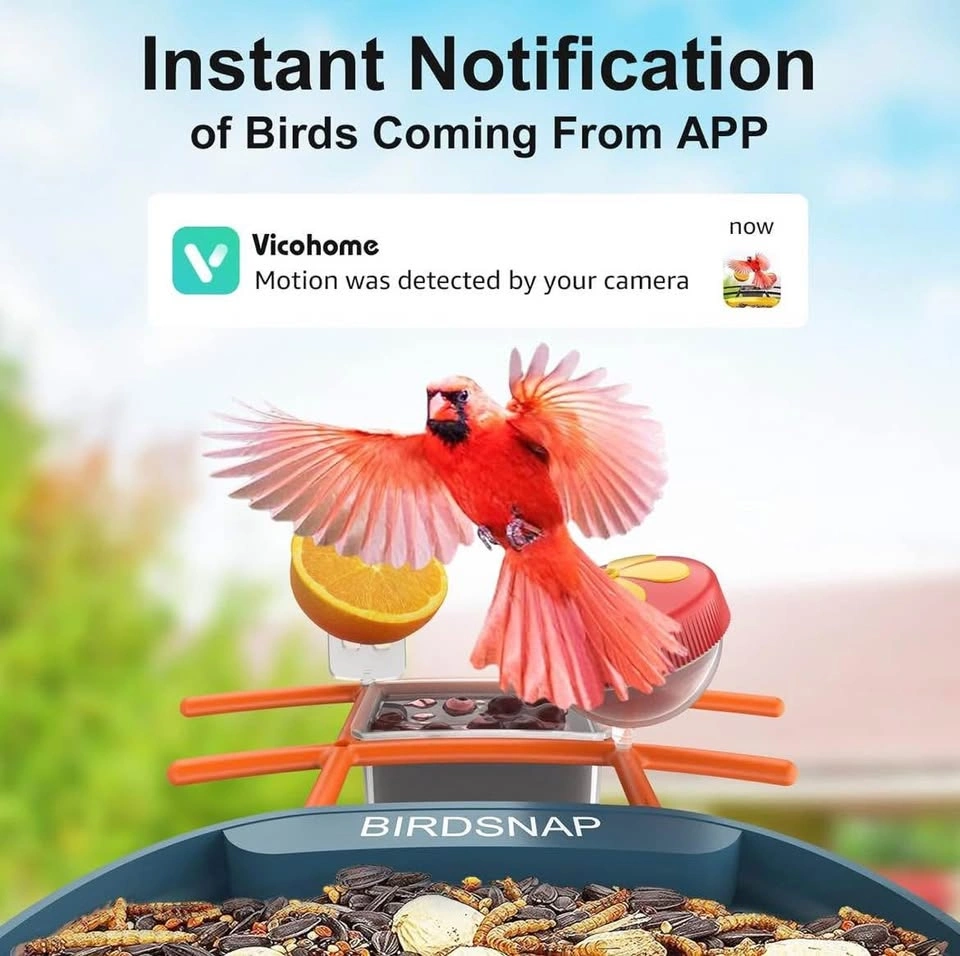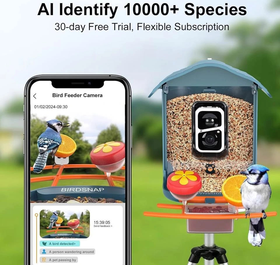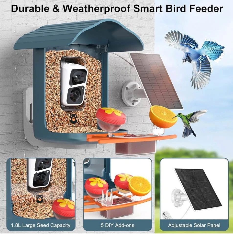 birdsnap® PAV- Smart Bird Feeder with Camera Solar Powered, 64GB Card & 2K HD Record Video Bird Camera Live with 5 DIY Add-ons, AI Identify Auto Capture, Ideal Gift for Birds Lover
