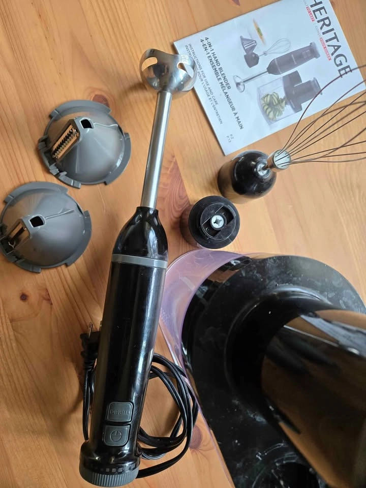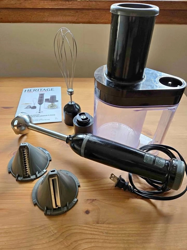 Meal prep made simple! This Heritage 4-in-1 hand blender set gives you everything you need in one compact package: