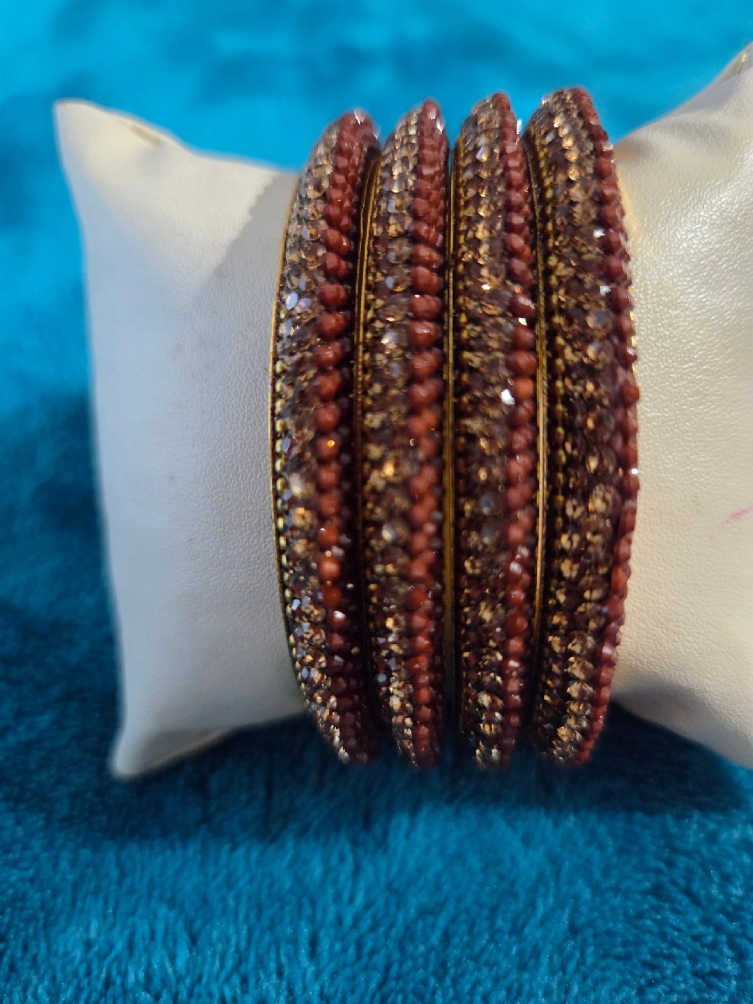 10Selling a set of brown and gold beaded bangles. They have a lovely sparkle and would be a great addition to any outfit!