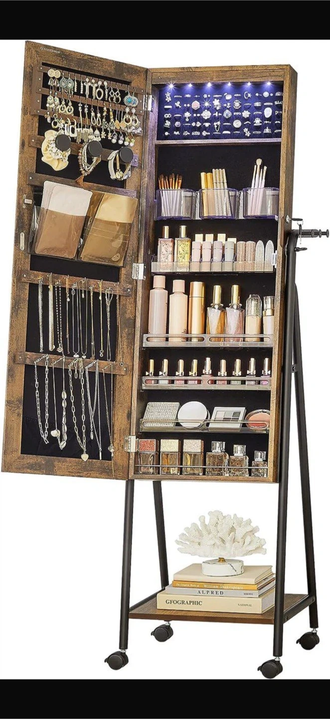 [Built-In Mirror with Lights] This standing jewelry armoire comes with an interior lighted mirror for you to put on jewelry and do makeup without having to go back and forth to your vanity mirror