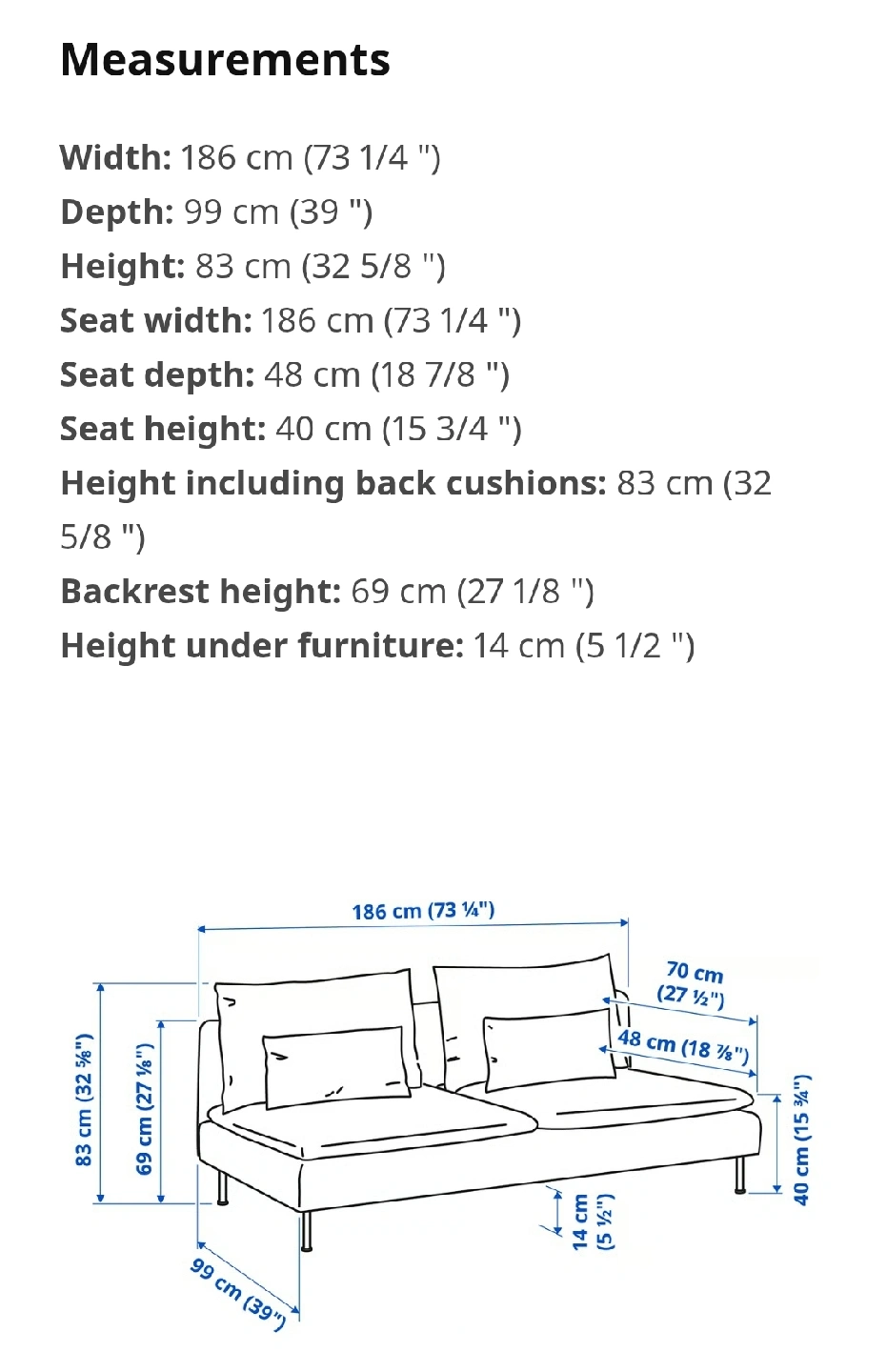 Width: 186 cm (73 1/4 ")