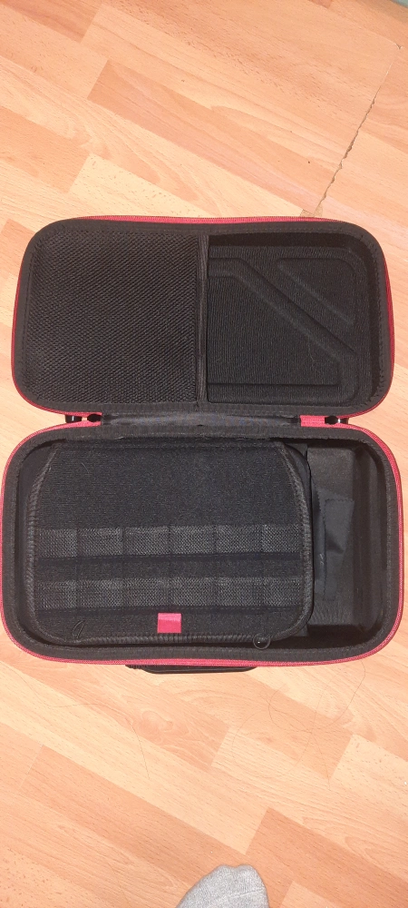Selling a Nintendo Switch carrying case with a red trim! It's in great shape and ready to protect your console on the go. Inside, there are custom compartments to keep your Switch, games, and accessories organized and secure. Perfect for travel or just keeping everything tidy at home