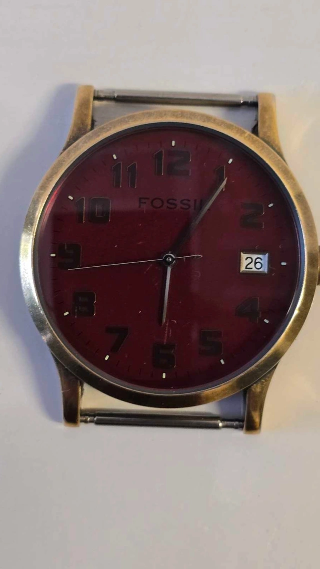 This Fossil watch features a stylish and durable design, perfect for everyday wear. The watch shows signs of wear on the band and face, but is in good working condition. It features a date display. It's ready to add a touch of class to your wrist! I'm asking $30. If the ad is up, it's available!