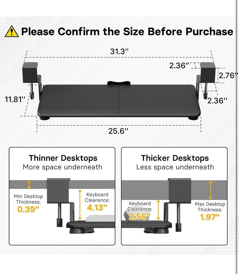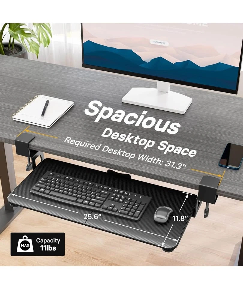 This item is brand new in box. Pickup Location @ East York, Toronto Under Desk Keyboard Tray, Pull-Out Keyboard & Mouse Platform with C-Clamp, 25.6 x 11.8 in Space-Saving Ergonomic Slide-Out Drawer, Black Carbon Fiber