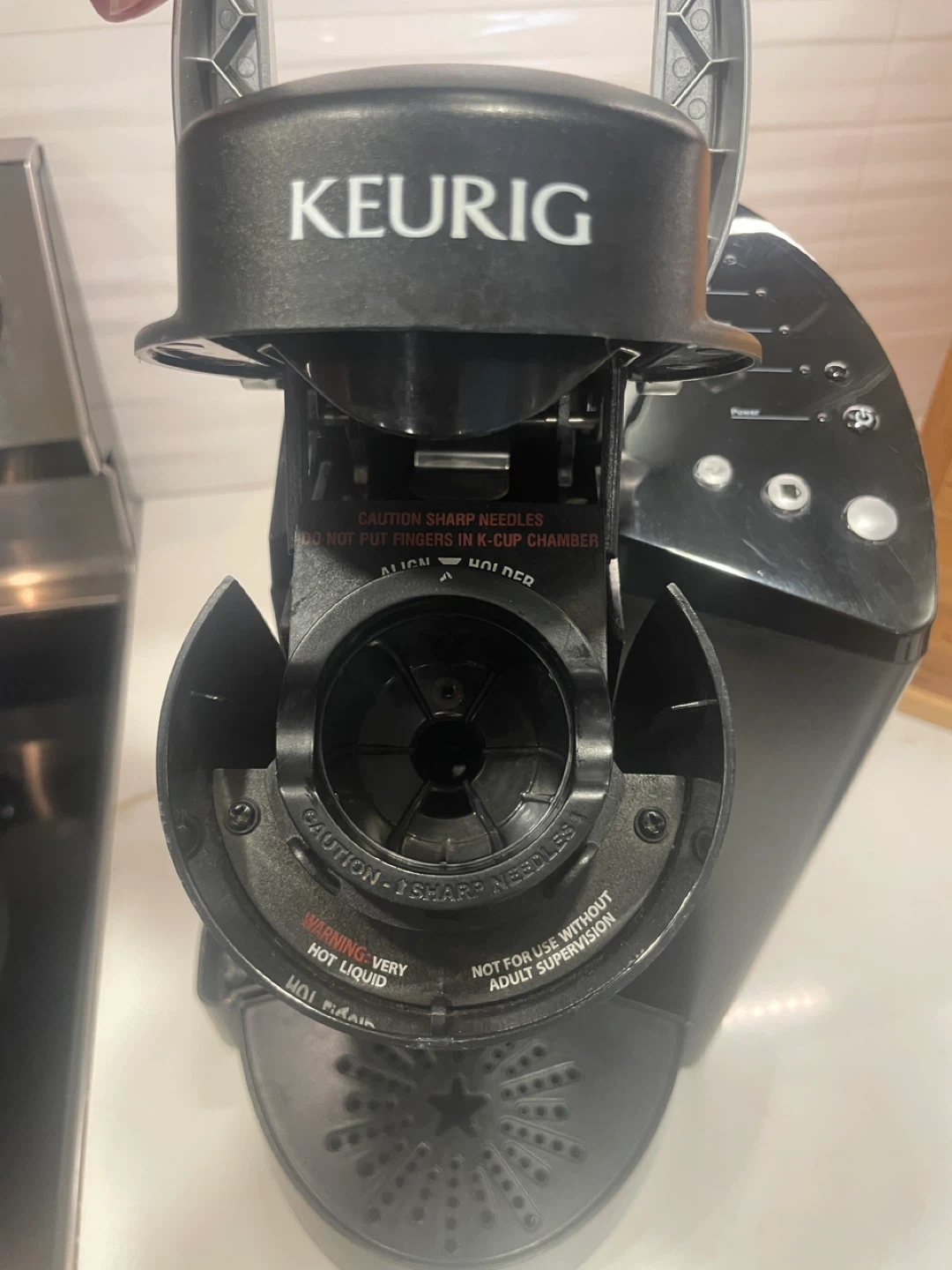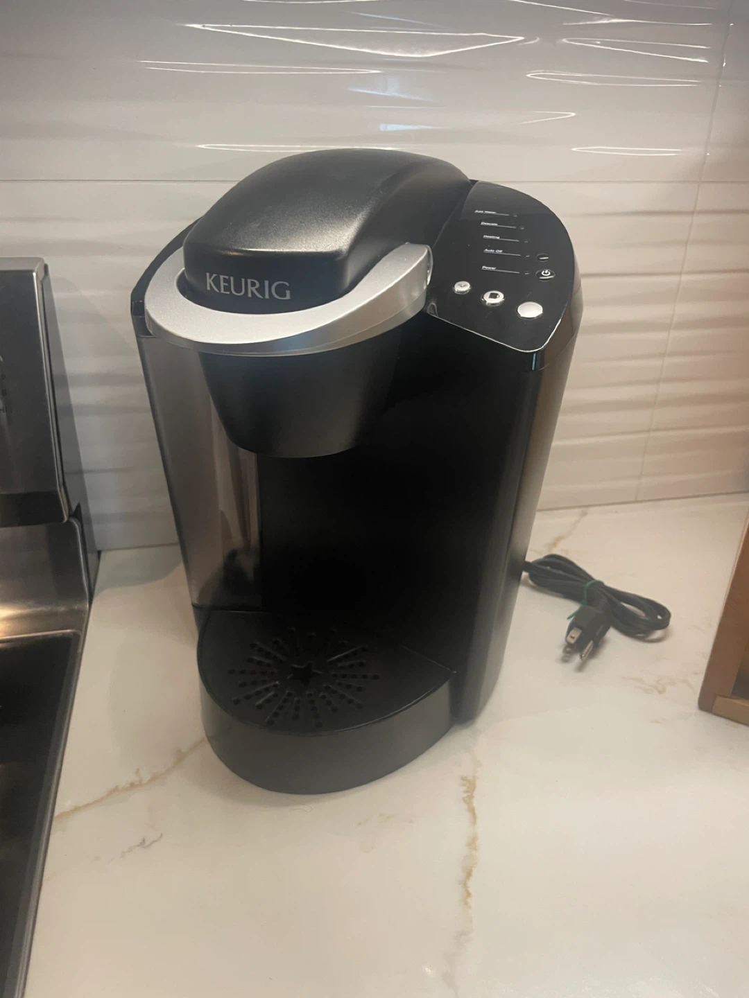 Selling a Keurig coffee maker. It's in good condition and ready to make your mornings easier! Includes all the parts shown in the photos.works great, I just needed more counter space. There’s 3 different mug sizes but the pictures are worn. You can still tell which button is what though. Starting to get a slight crack on the water holder but only on the surface. I have a video of it running if anyone wants to see it work!