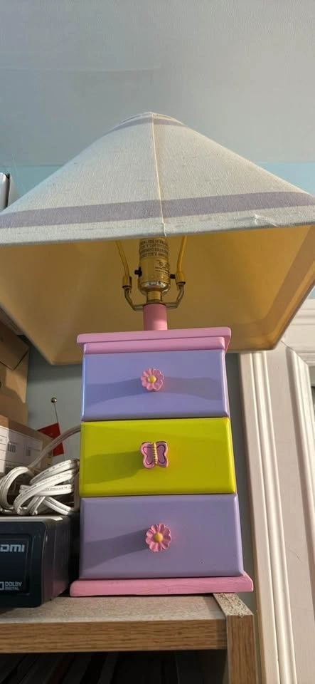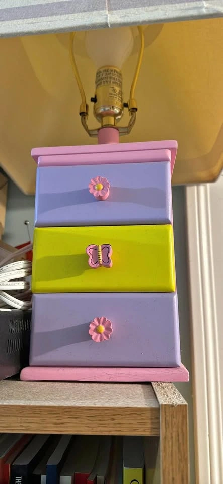 Girls lamp with 3 integrated drawers. Great condition uses 60W lamp