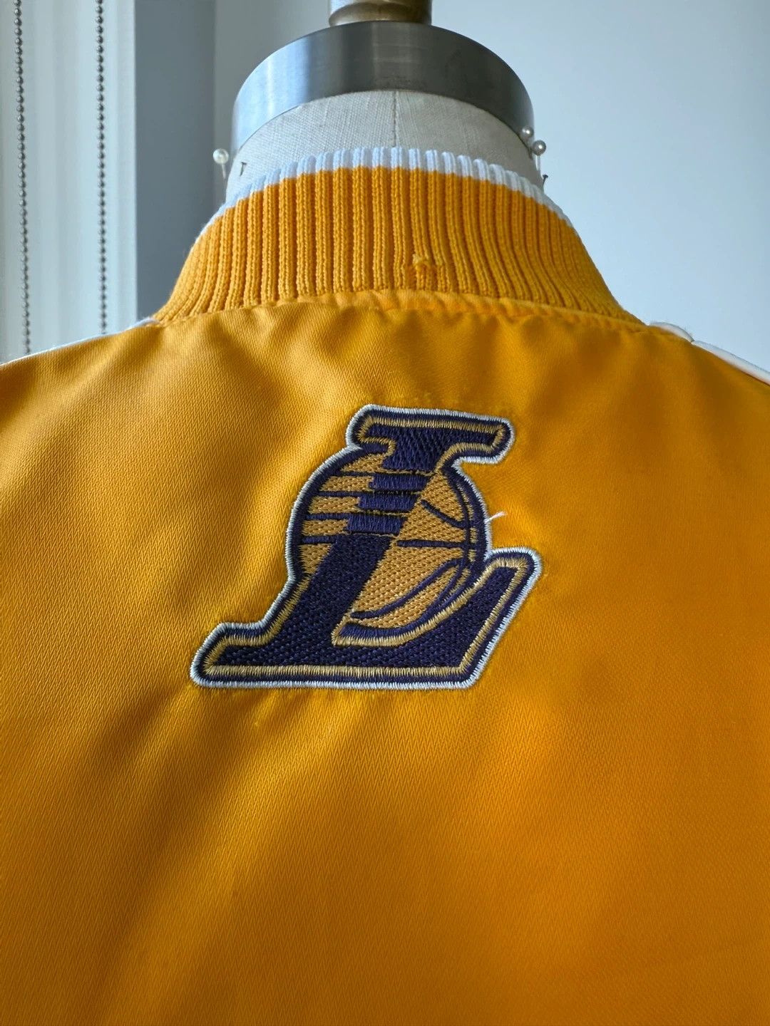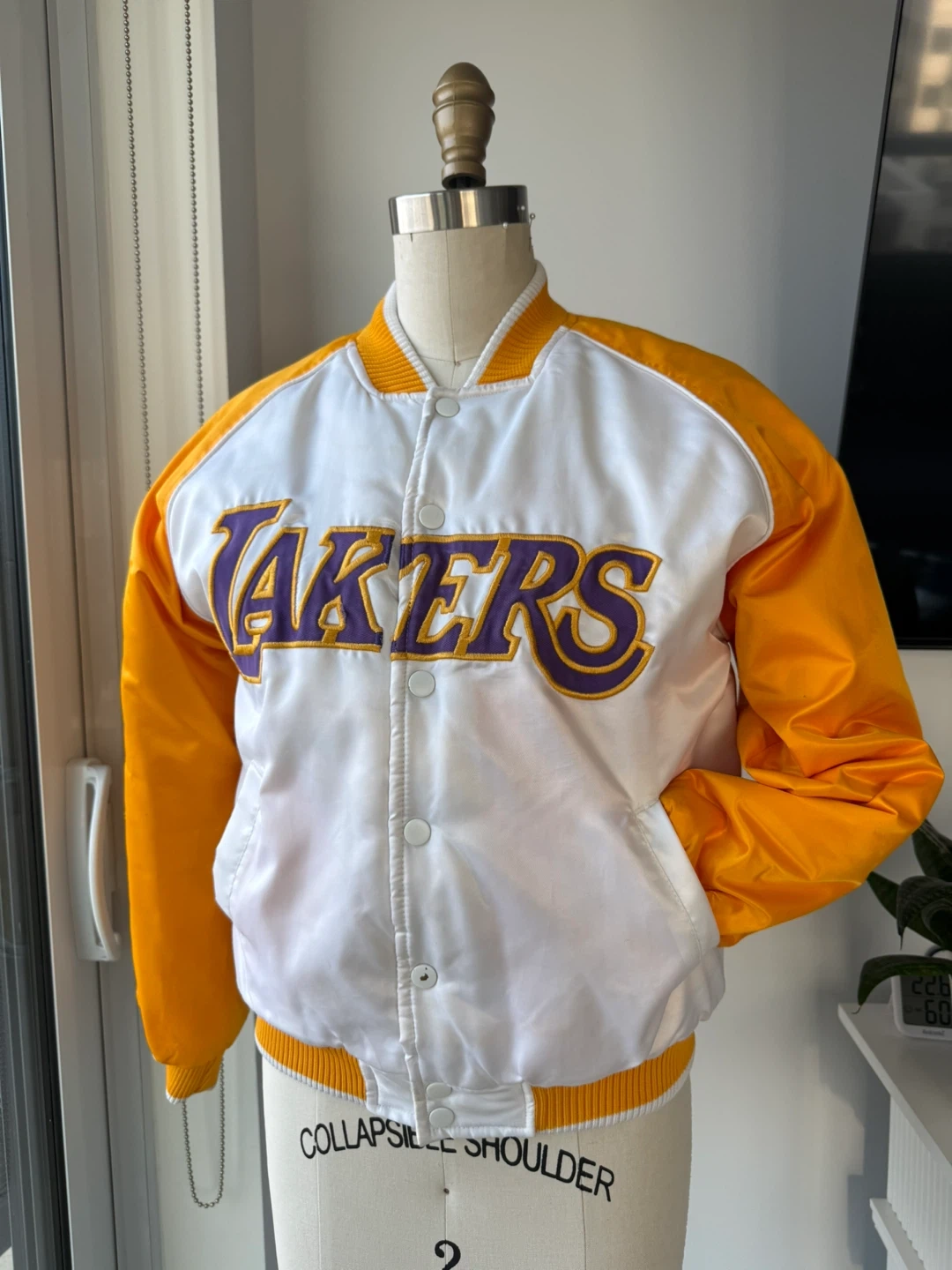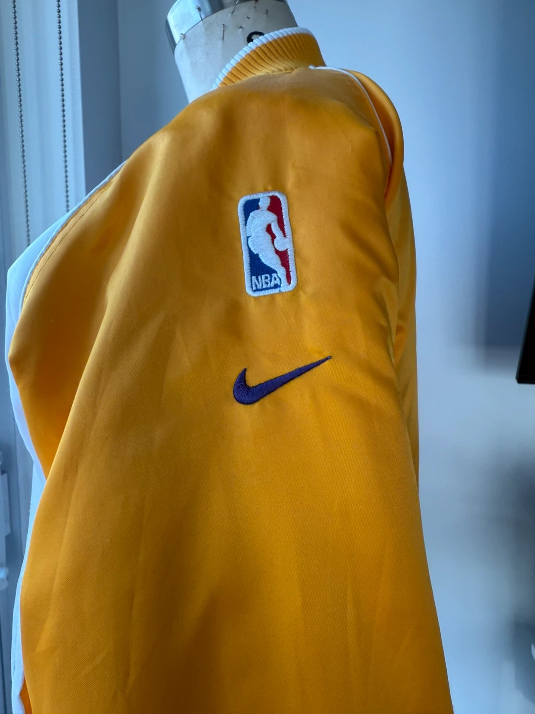 Selling a Nike Lakers NBA bomber jacket in size medium! This jacket features the Lakers logo and NBA logo. It's perfect for any Lakers fan!