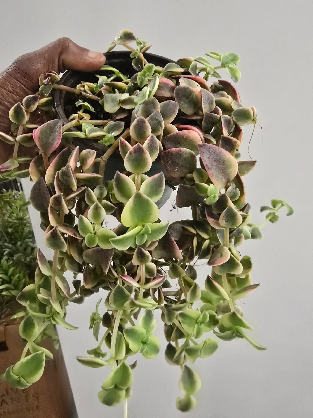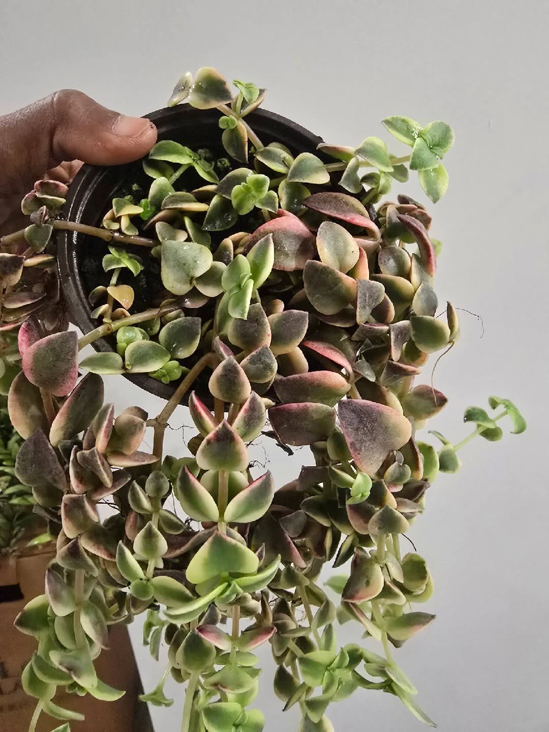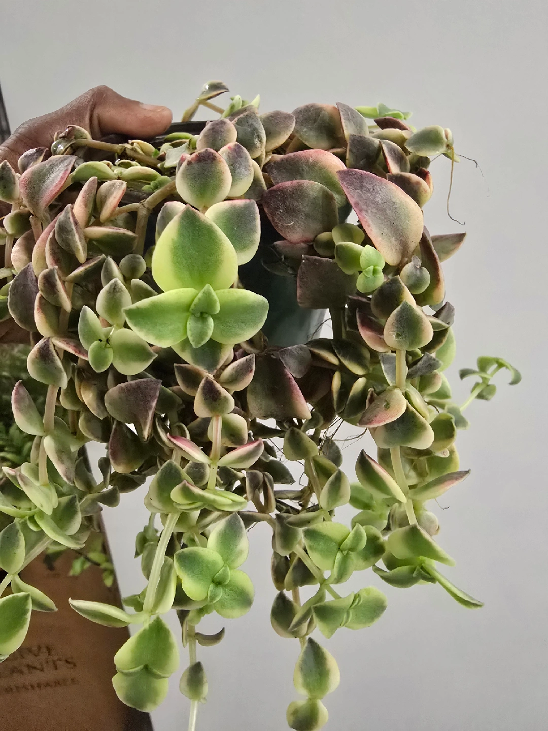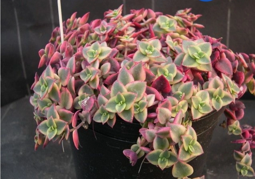 Selling a beautiful Crassula Marginalis Rubra Variegata, also known as a Calico Kitten plant! It's a lovely trailing succulent with variegated leaves in shades of green, pink, and cream. Perfect for adding a touch of colour to your indoor space