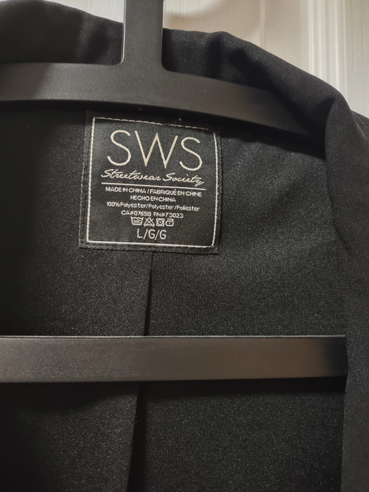 30Selling a black blazer from SWS Streetwear Society. It's a size L and made of polyester. It's in great condition!