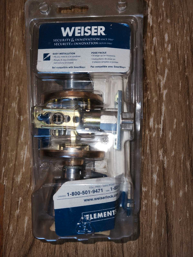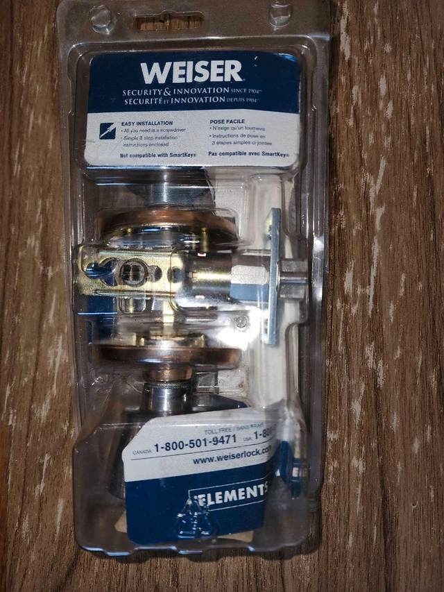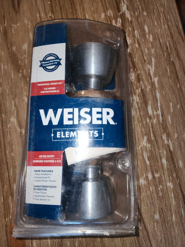 Selling a brand new Weiser Elements keyed entry doorknob, still in its original packaging. This doorknob features guaranteed fit and lasting power finish, ensuring both security and durability for your home. Never been installed, perfect for new constructions or replacements.