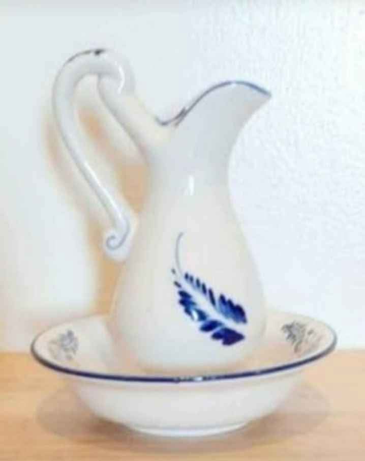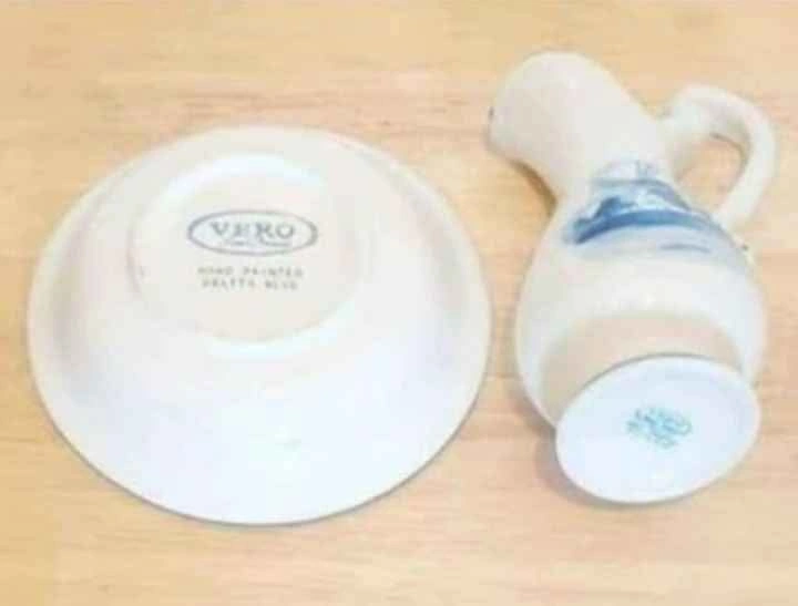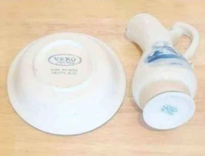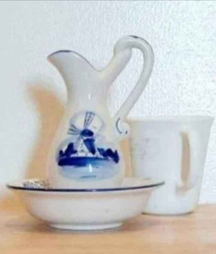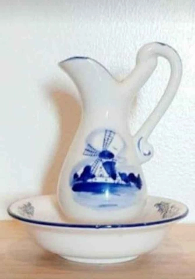 Vintage Mid Century, Hand Painted , Stamped , Delft Basin And Pitcher