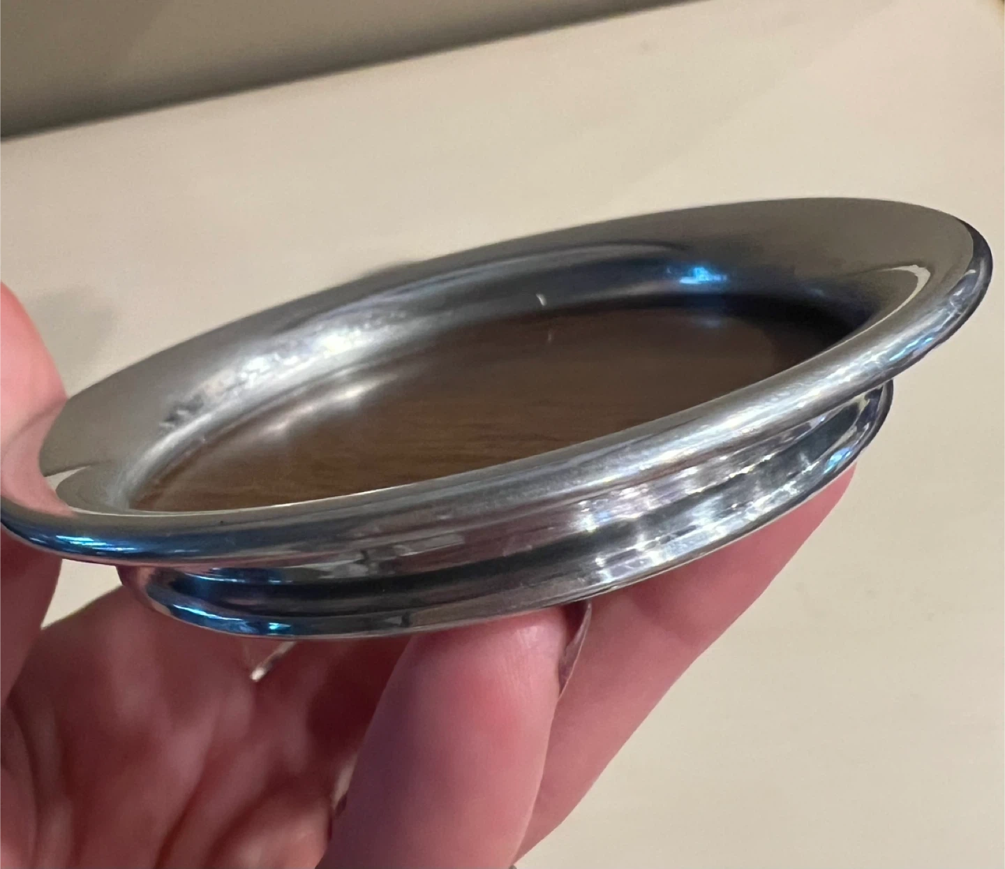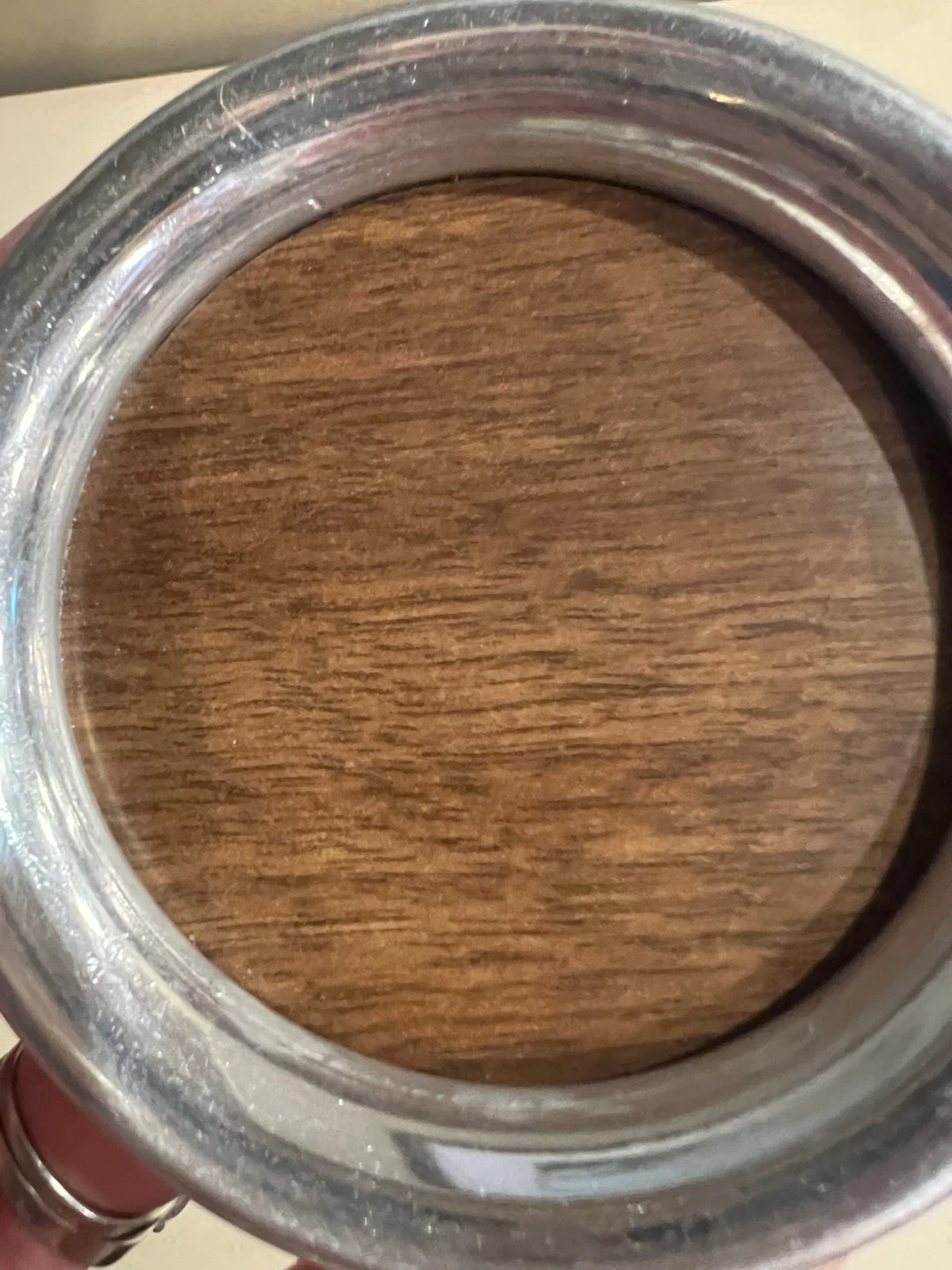Vintage coasters Set of 4 Sleek silver tone raised rim and base with warm faux wood inlay Great vintage condition 3.5” across They are like tiny landing pads for your drinks!! Asking $5 for the set Interested? Message me and please check my other listings…