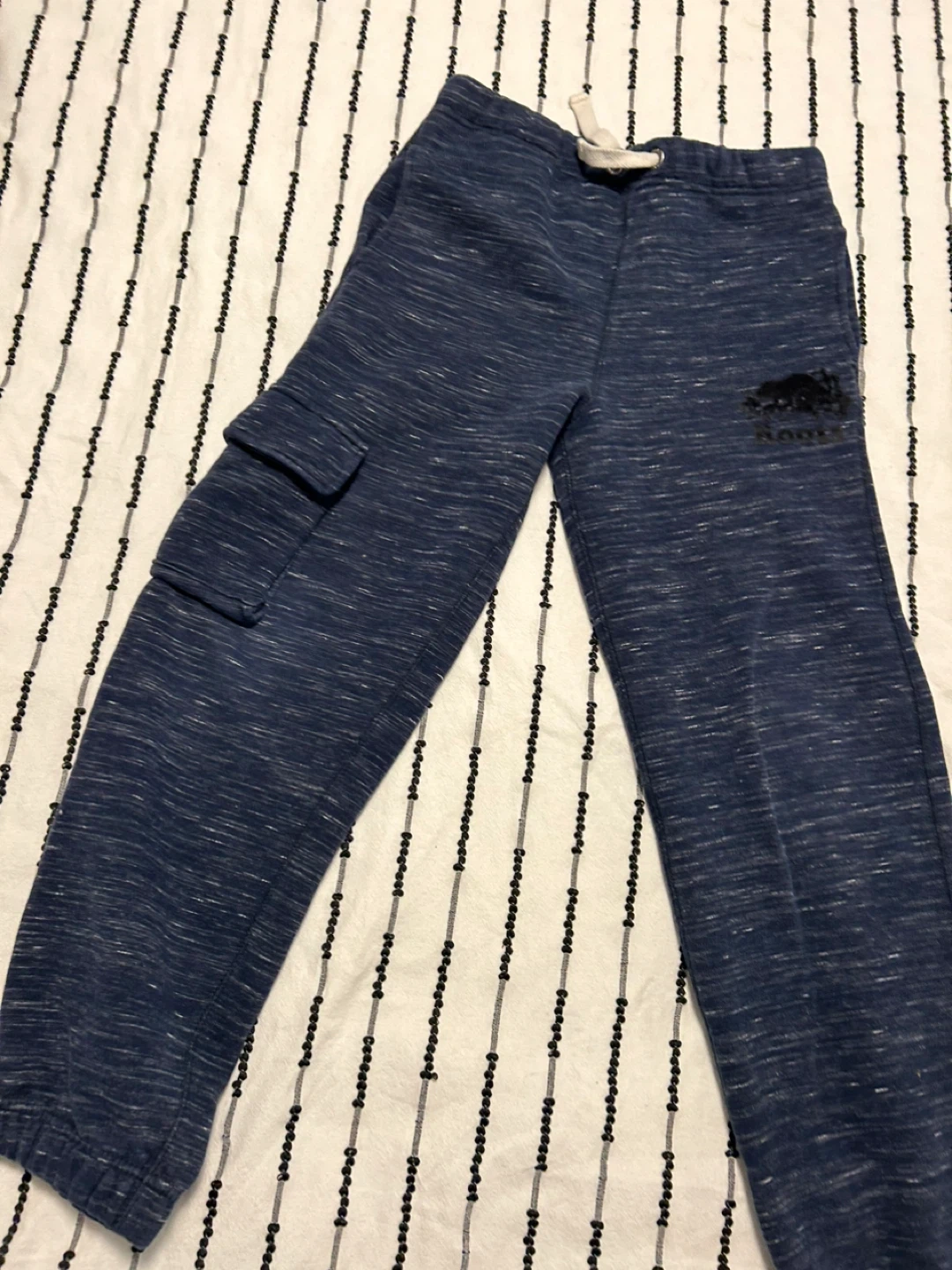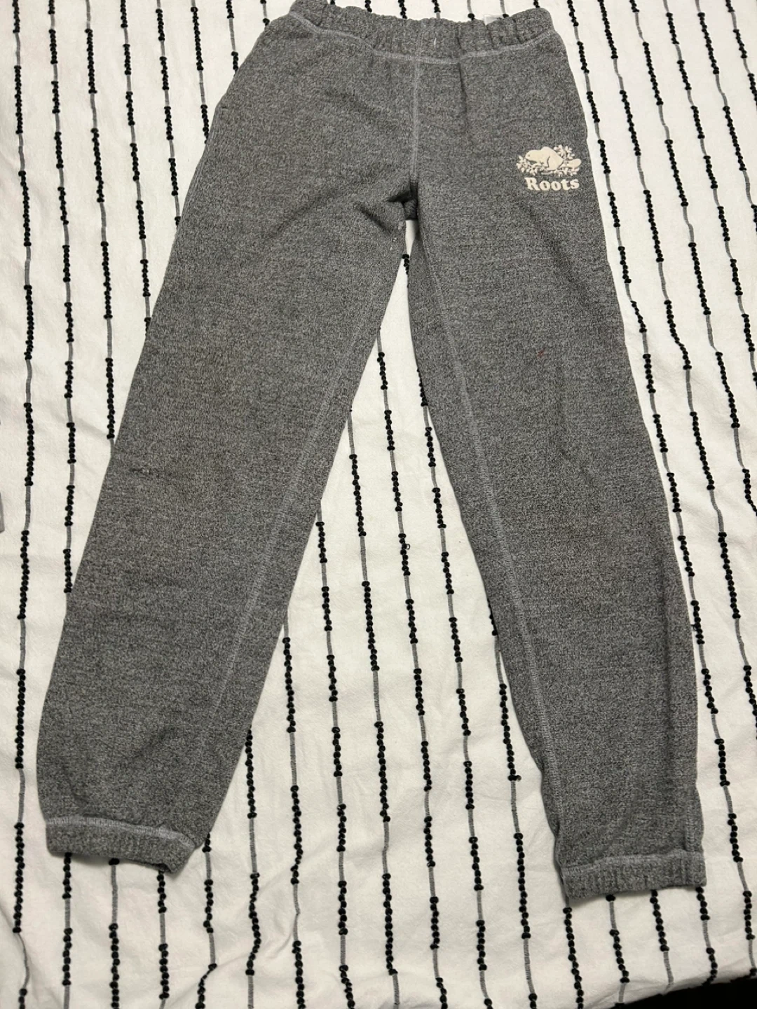 23Selling a couple of pairs of Roots kids sweatpants! One pair is grey and the other is blue. Both are size 14 and in great condition! Price is for 4 pices