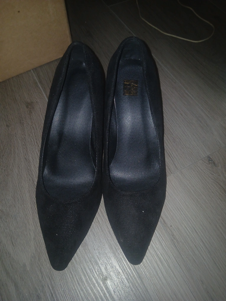 Selling a pair of black pointed toe heels. They are in good condition. Perfect for a night out or a special occasion. Again size issue for me, but perfect for you.