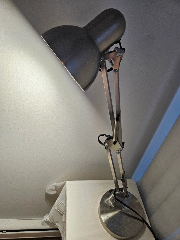 Selling an adjustable architect-style desk lamp. It's in great shape and provides excellent task lighting! The lamp has a classic design and a sturdy base, perfect for any workspace or study area